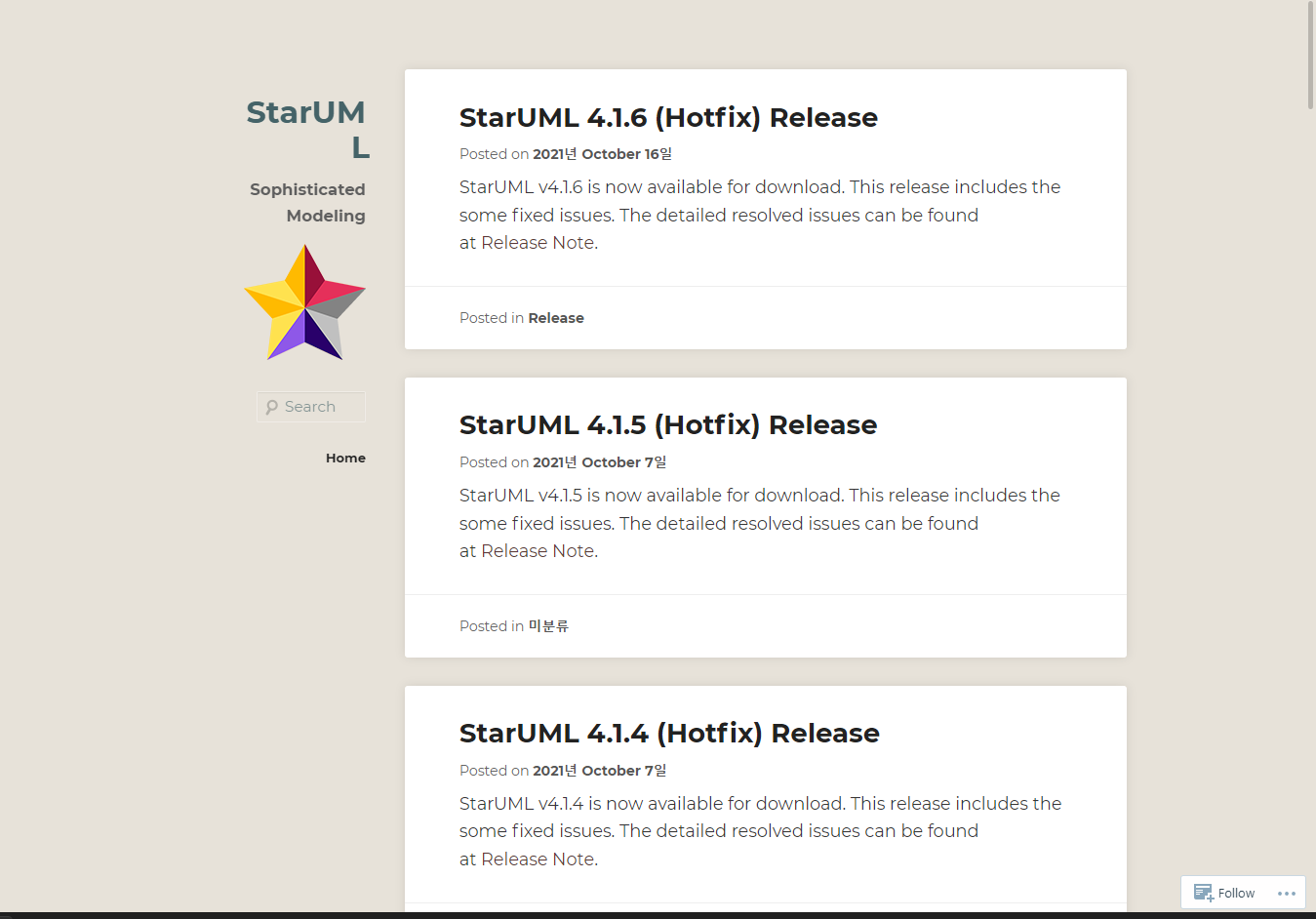 StarUML url, 공식블로그, 무료버전 다운로드 경로