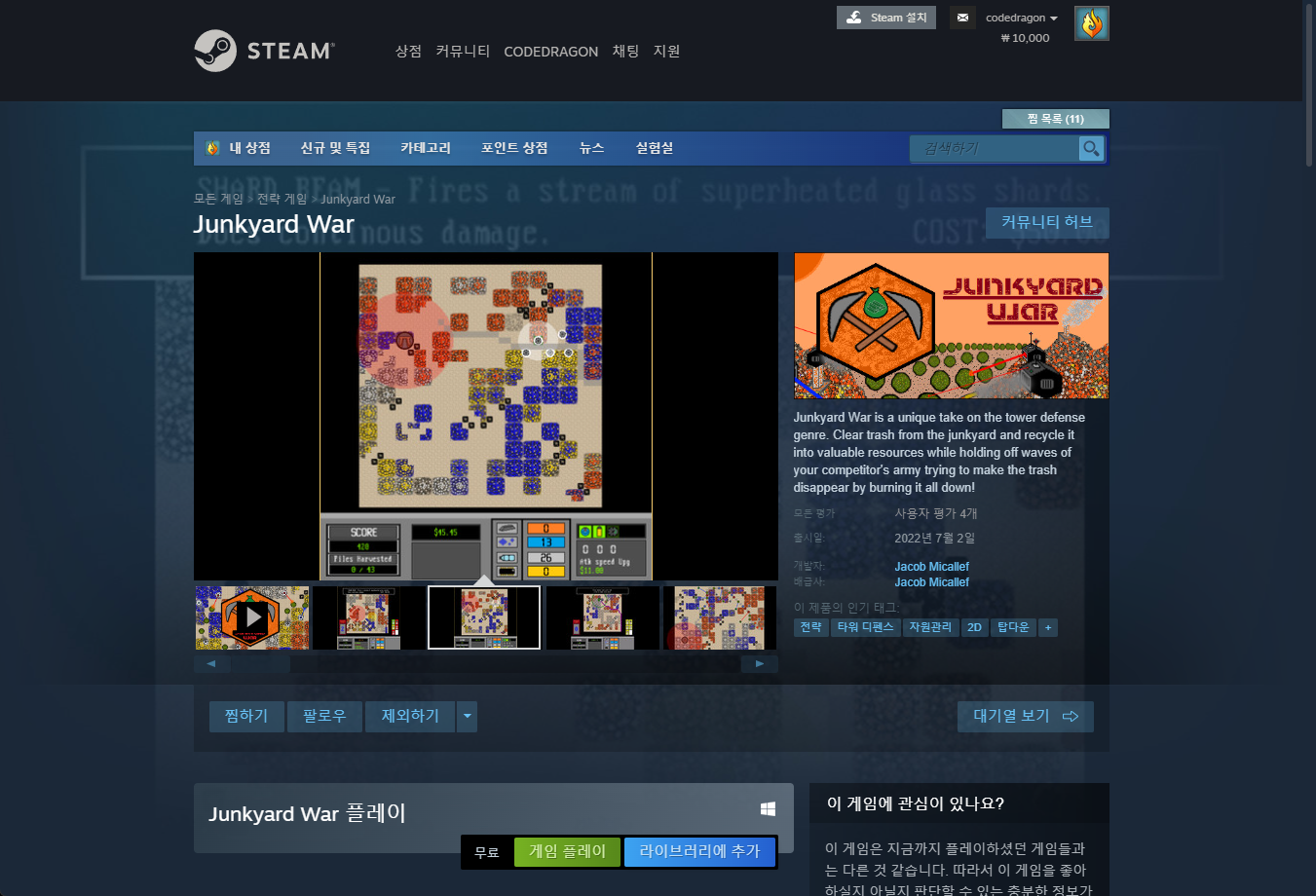 "Junkyard War" 스팀 페이지 입니다.