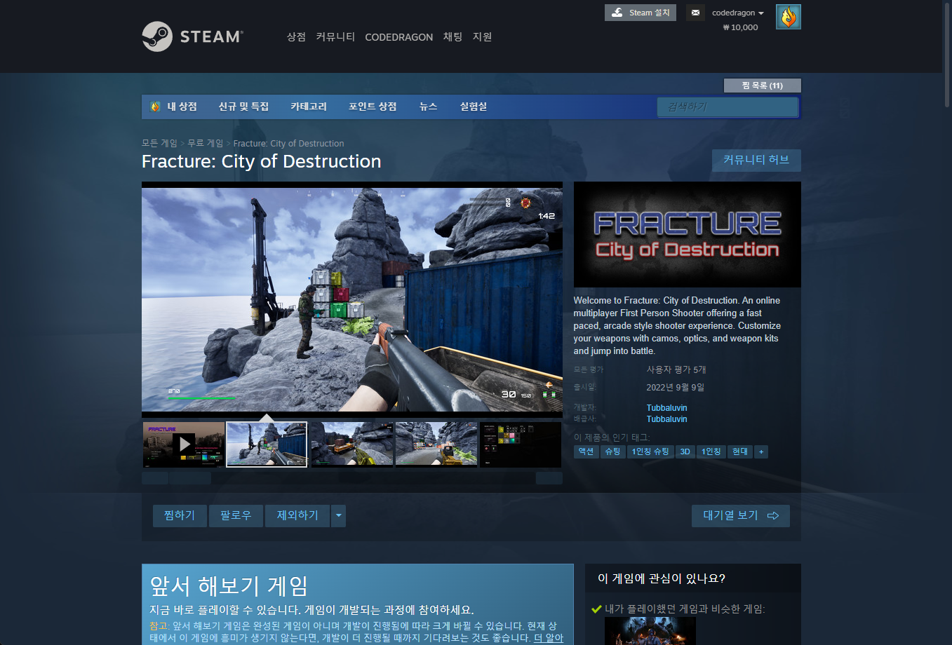 "Fracture: City of Destruction" 스팀 페이지 입니다.