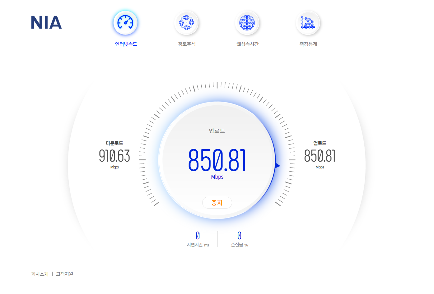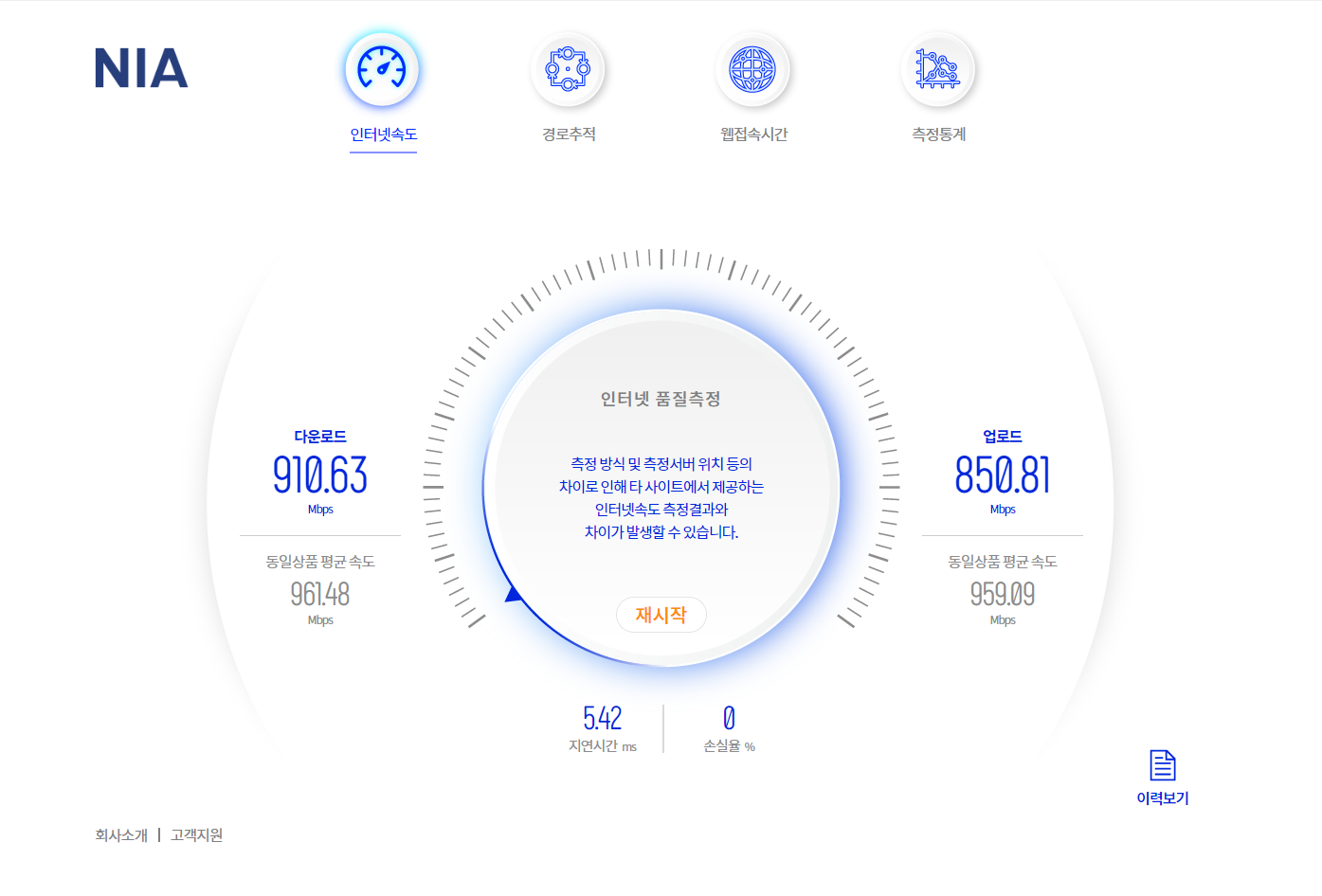 NIA 인터넷 품질 측정 스피드 인터넷 속도측정