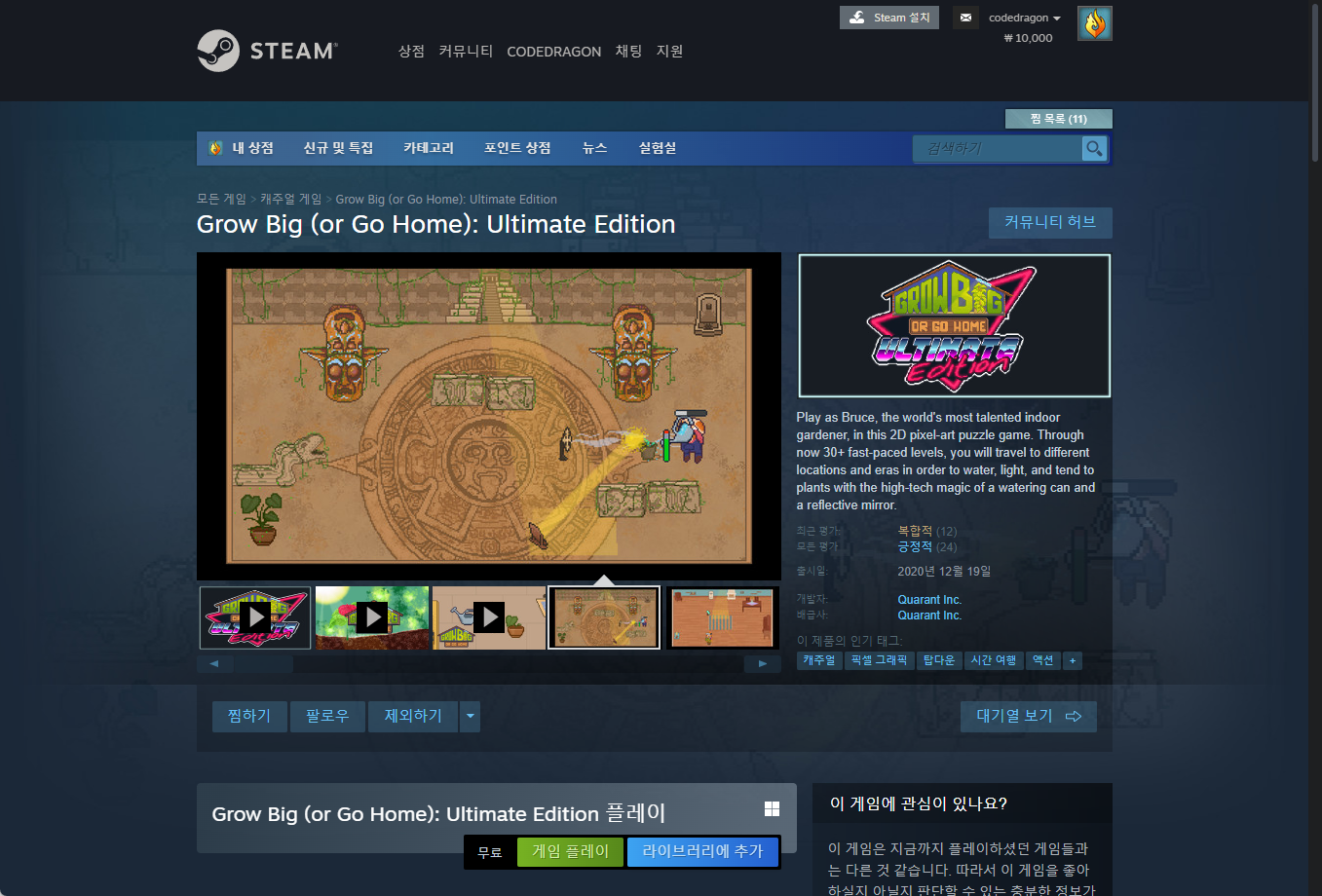 "Grow Big (or Go Home): Ultimate Edition" 페이지를 내려 [게임 플레이]를 클릭하면 됩니다.
