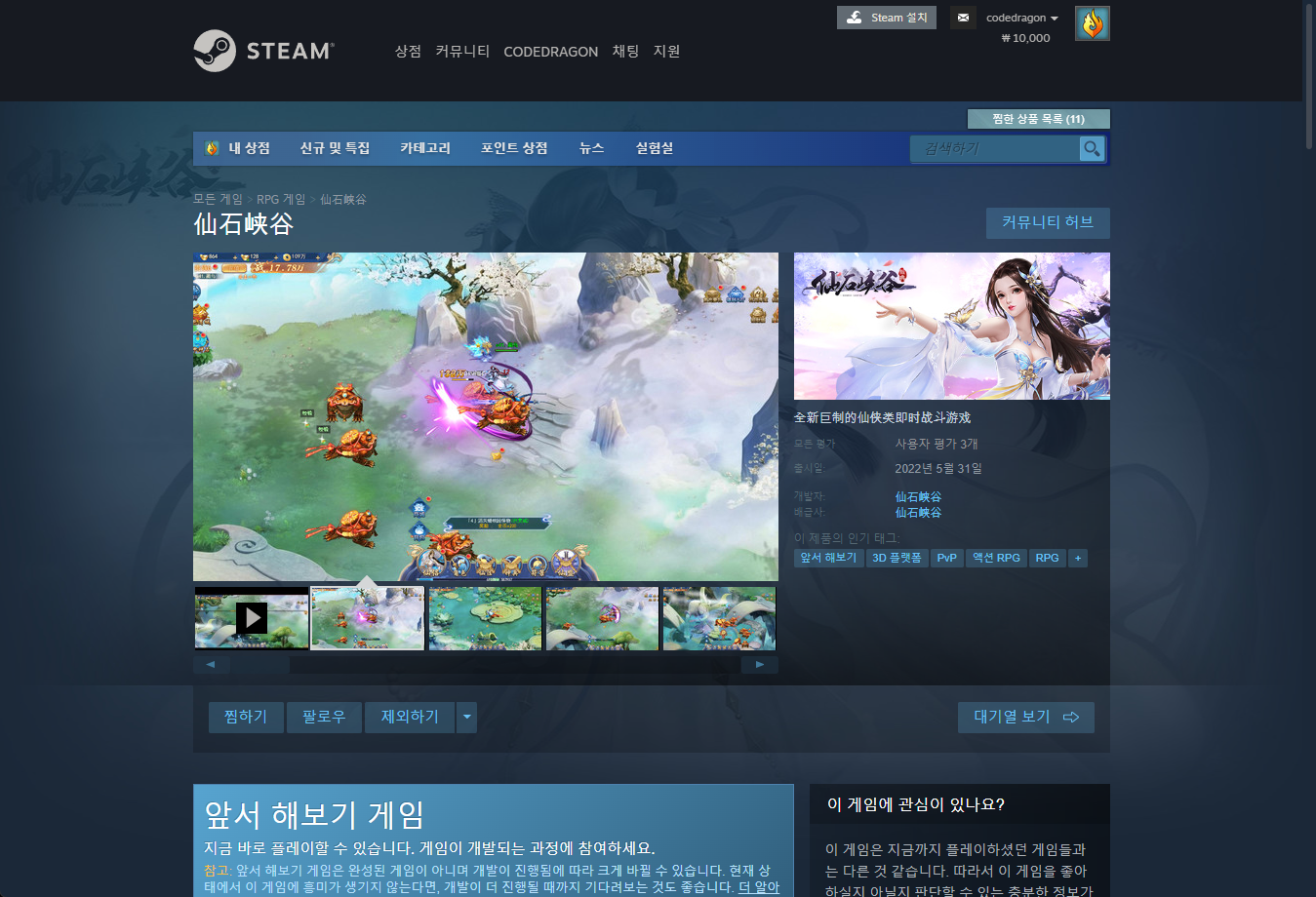 "仙石峡谷 선석협곡" 스팀 페이지 입니다.