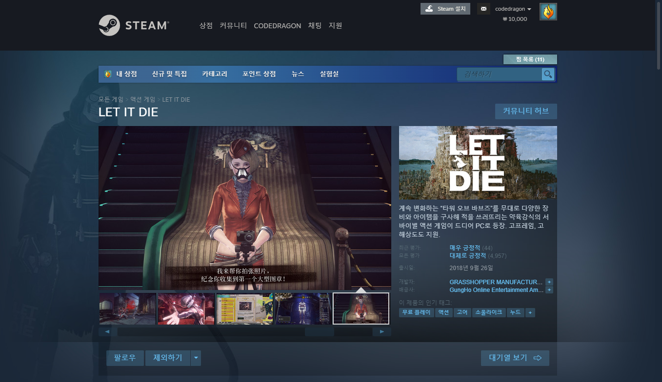 "LET IT DIE" 스팀 페이지 입니다.