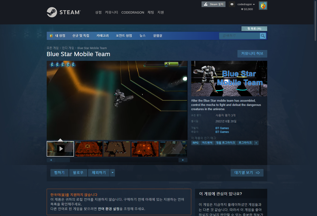 "Blue Star Mobile Team" 스팀 페이지 입니다.