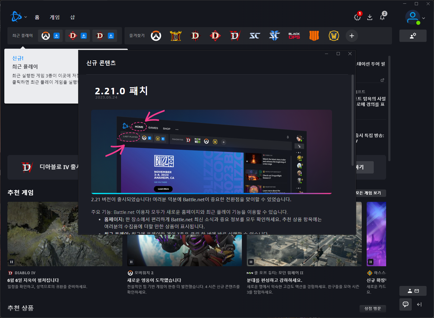 배틀넷 클라이언트 2.21.0 버전으로 업데이트 되었습니다. (2023-05)