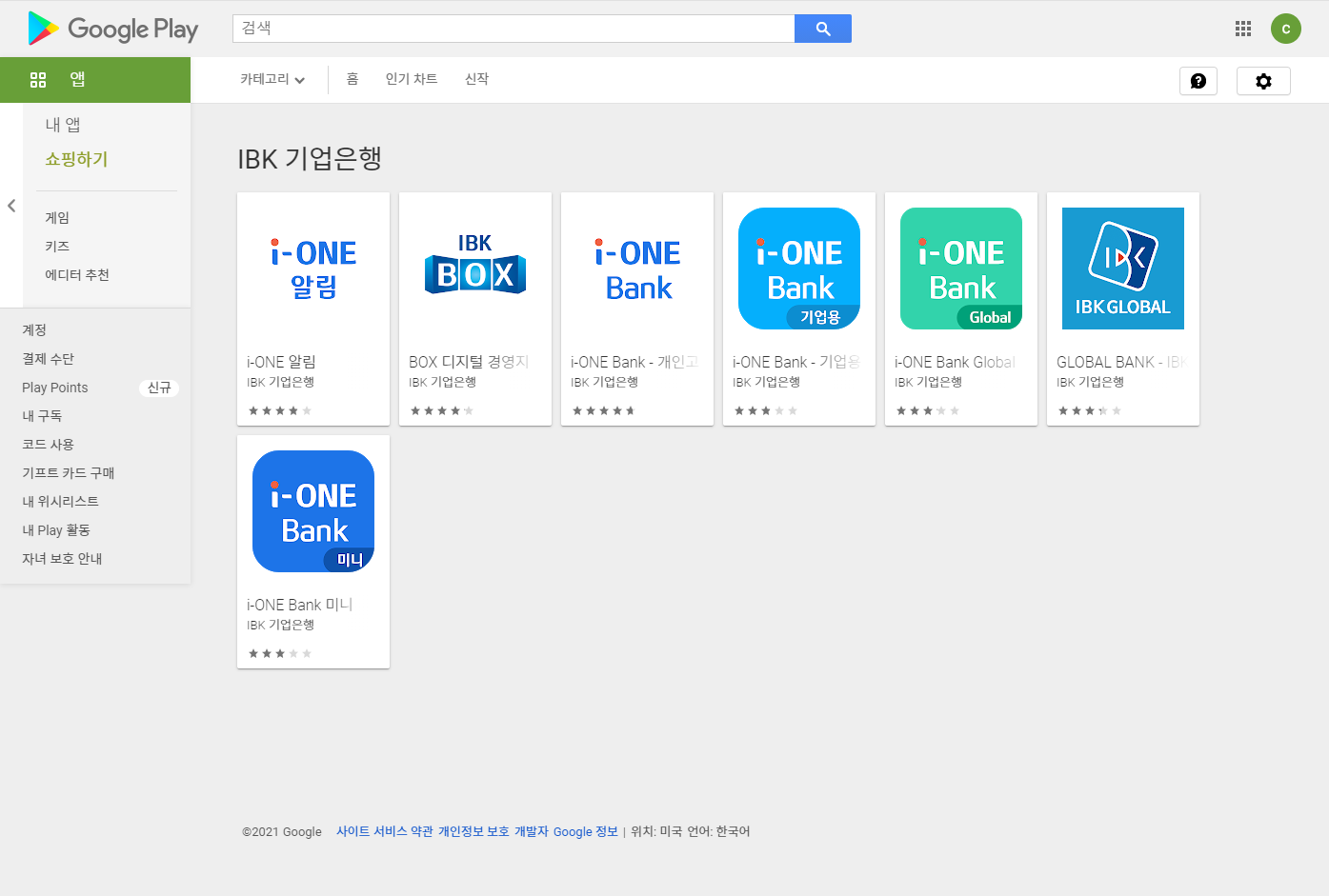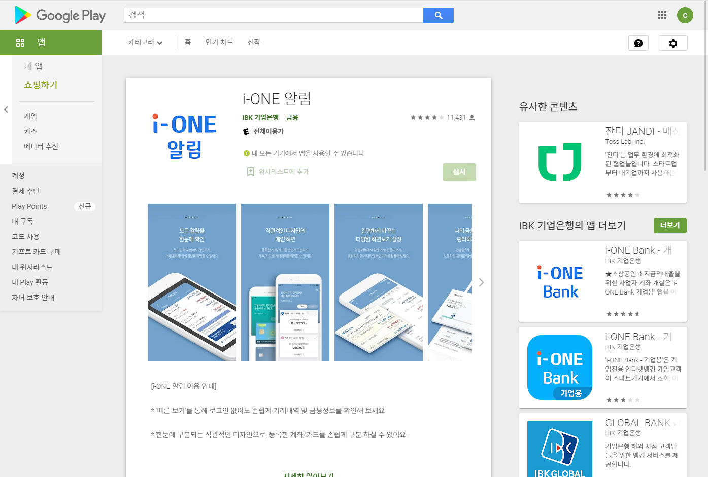 기업은행 모바일 뱅킹 앱 - 구글 플레이스토어 Google play Store