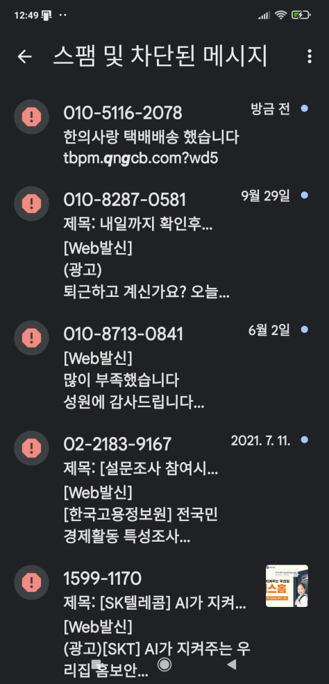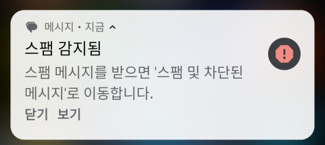 스팸 감지됨, '스팸 및 차단된 메시지'로 이동