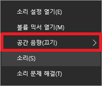 나오는 메뉴에서 [공간 음향(끄기)] 메뉴를 클릭합니다.