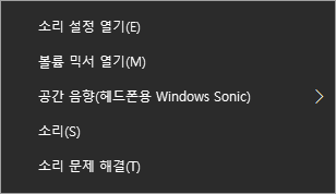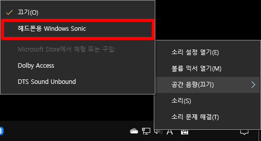 나오는 메뉴에서 [헤드폰용 Windows Sonic] 항목을 체크합니다.