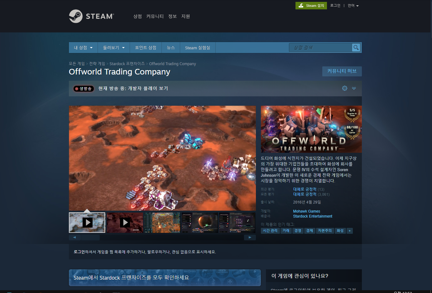 금주 게임은 "오프월드 트레이딩 컴퍼니" 입니다.