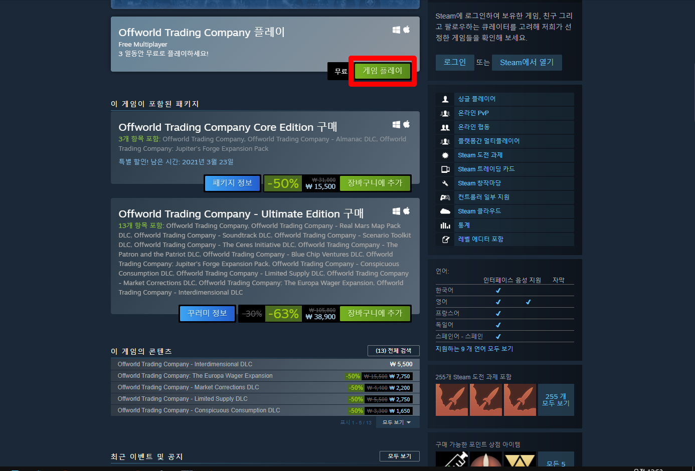 Steam 스팀 금주 무료 플레이 - Offworld Trading Company 오프월드 트레이딩 컴퍼니 Play for Free weekend on Steam 스팀