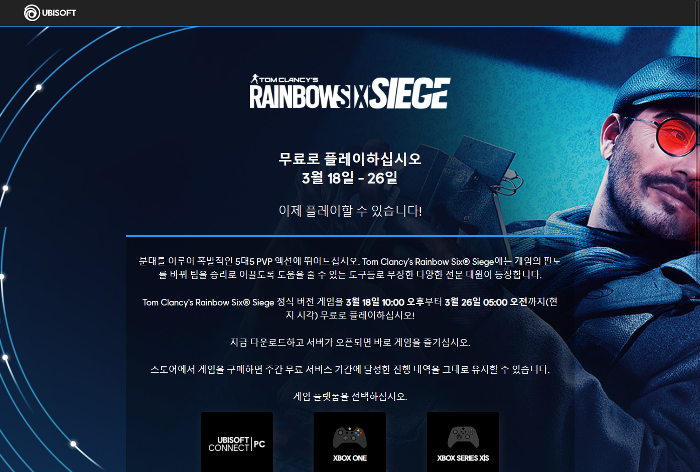 금주 무료 플레이 - Tom Clancy's Rainbow Six Siege 톰 클랜시의 레인보우 식스 시즈 Play for Free weekend on Steam 스팀, Epic 에픽, Ubisoft 유비소프트