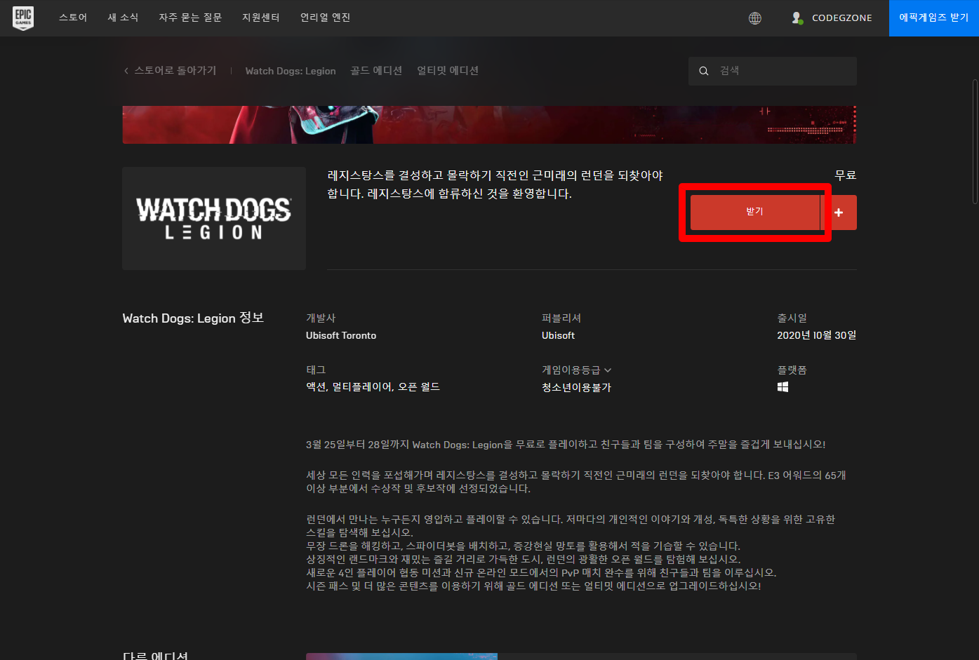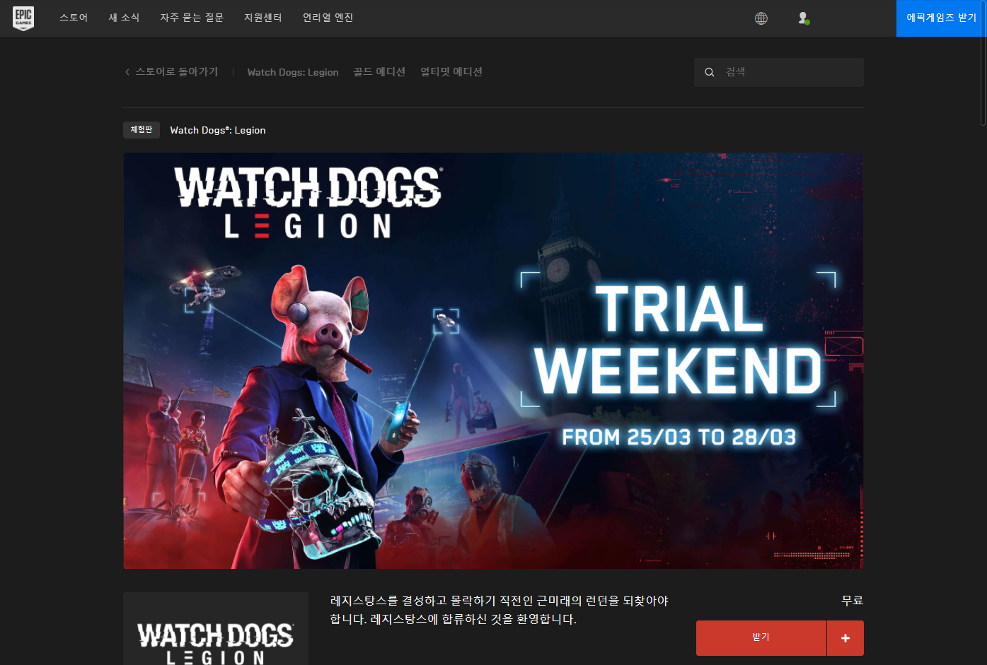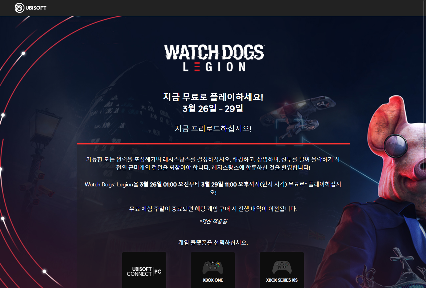 금주 무료 플레이 - WATCH DOGS: LEGION 와치독: 리전 Play for Free weekend on Epic 에릭, Ubisoft 유비소프트