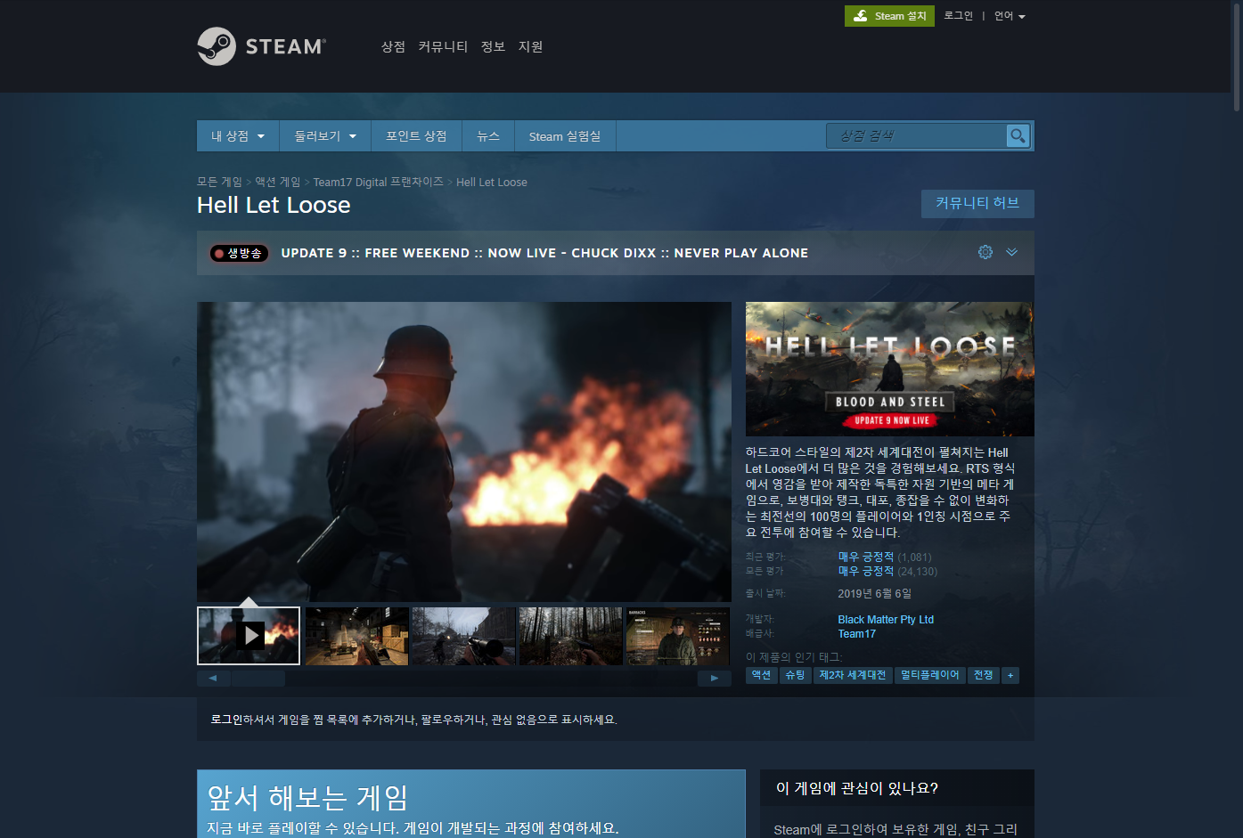 Steam 스팀 금주 무료 플레이 - Hell Let Loose 헬 렛 루즈 Play for Free weekend on Steam 스팀