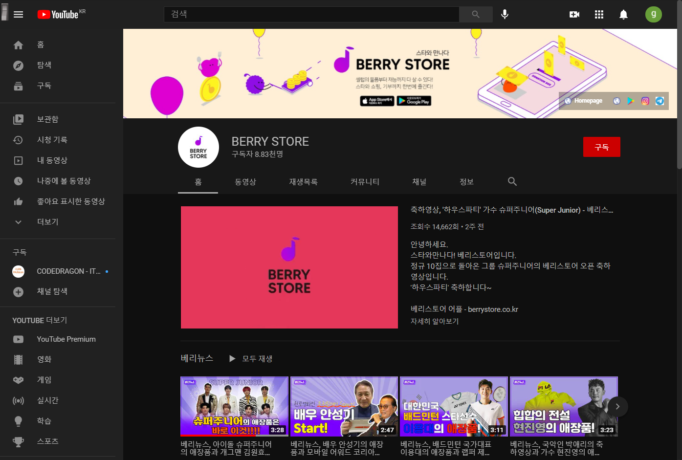 BERRY STORE 베리스토어 유튜브