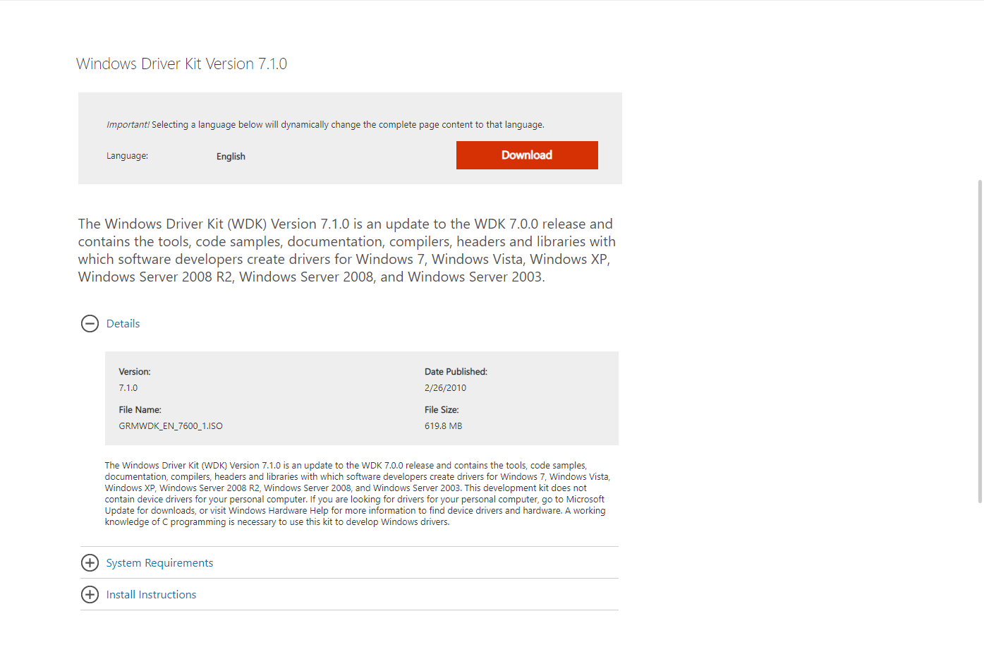 Windows Driver Kit Version 7.1.0