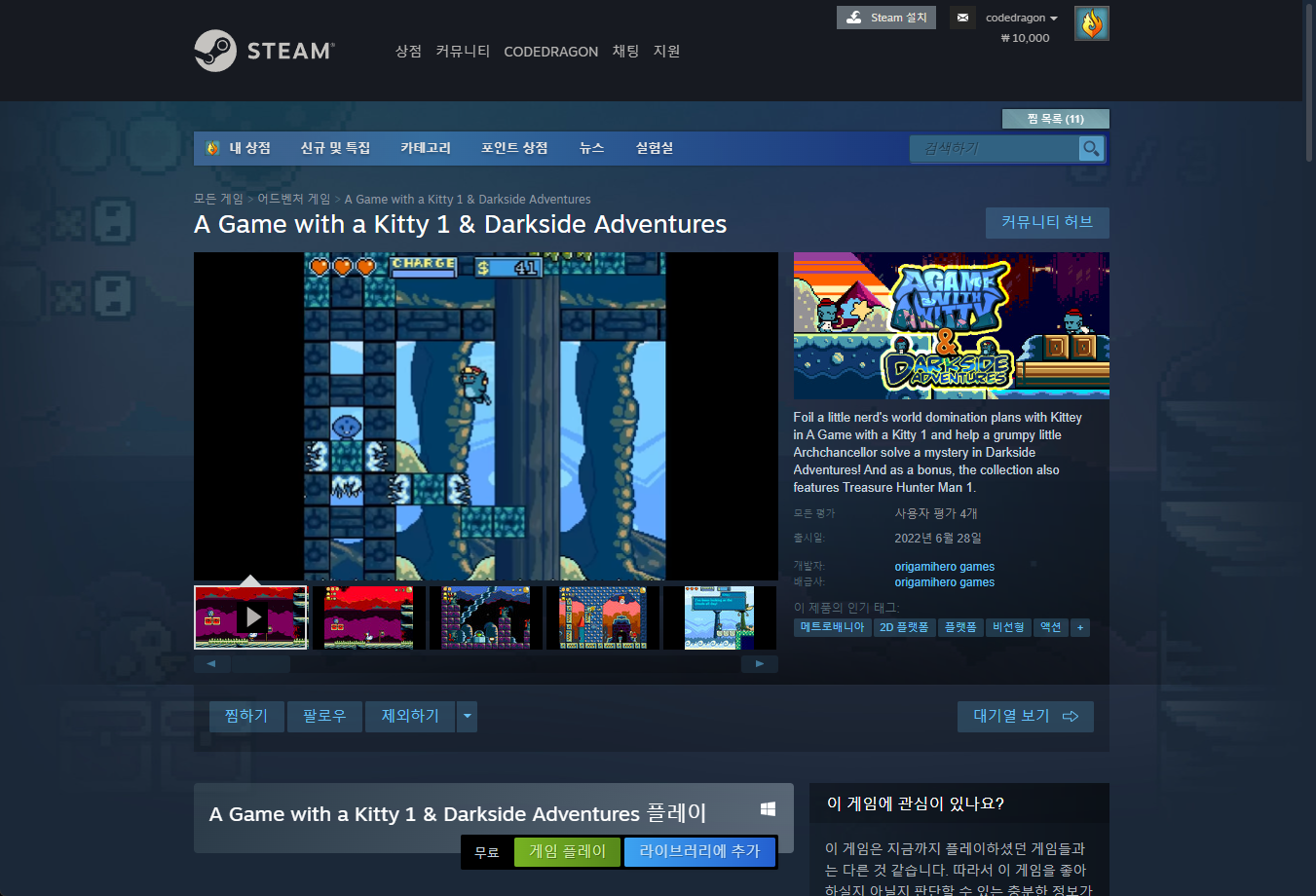 "A Game with a Kitty 1 & Darkside Adventures" 스팀 페이지 입니다.