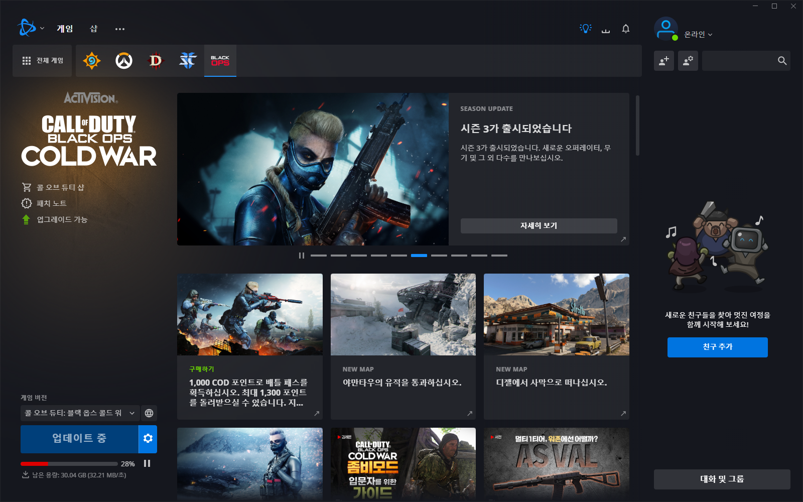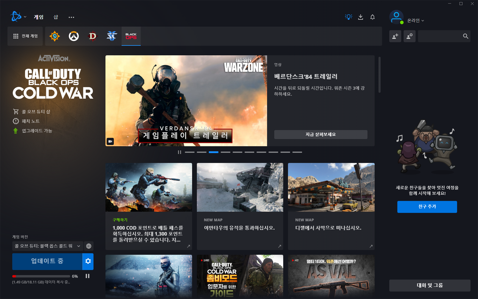 기존에 설치한 적이 있다면 배틀넷 접속과 동시에 게임이 업데이트됩니다.