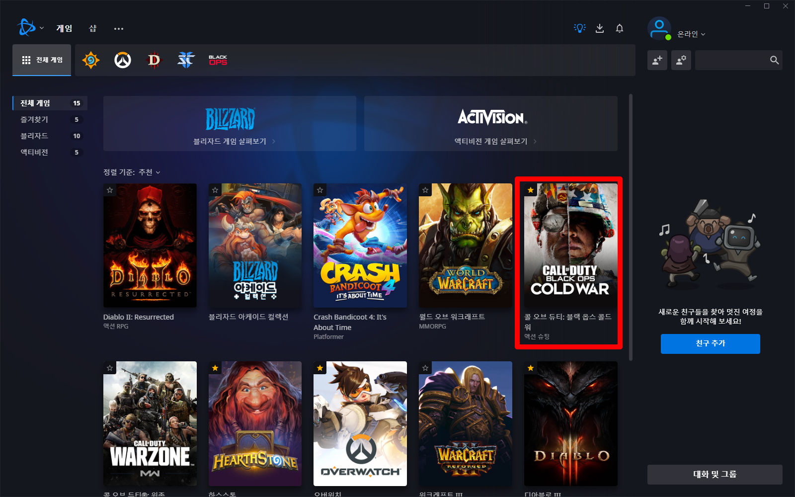 [콜 오브 듀티: BOCW] 항목을 클릭합니다.