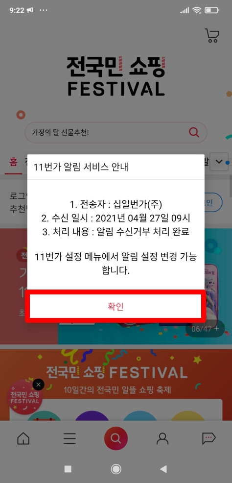 마케팅 알림 설정은 거부하겠습니다. [동의안함] 클릭합니다.