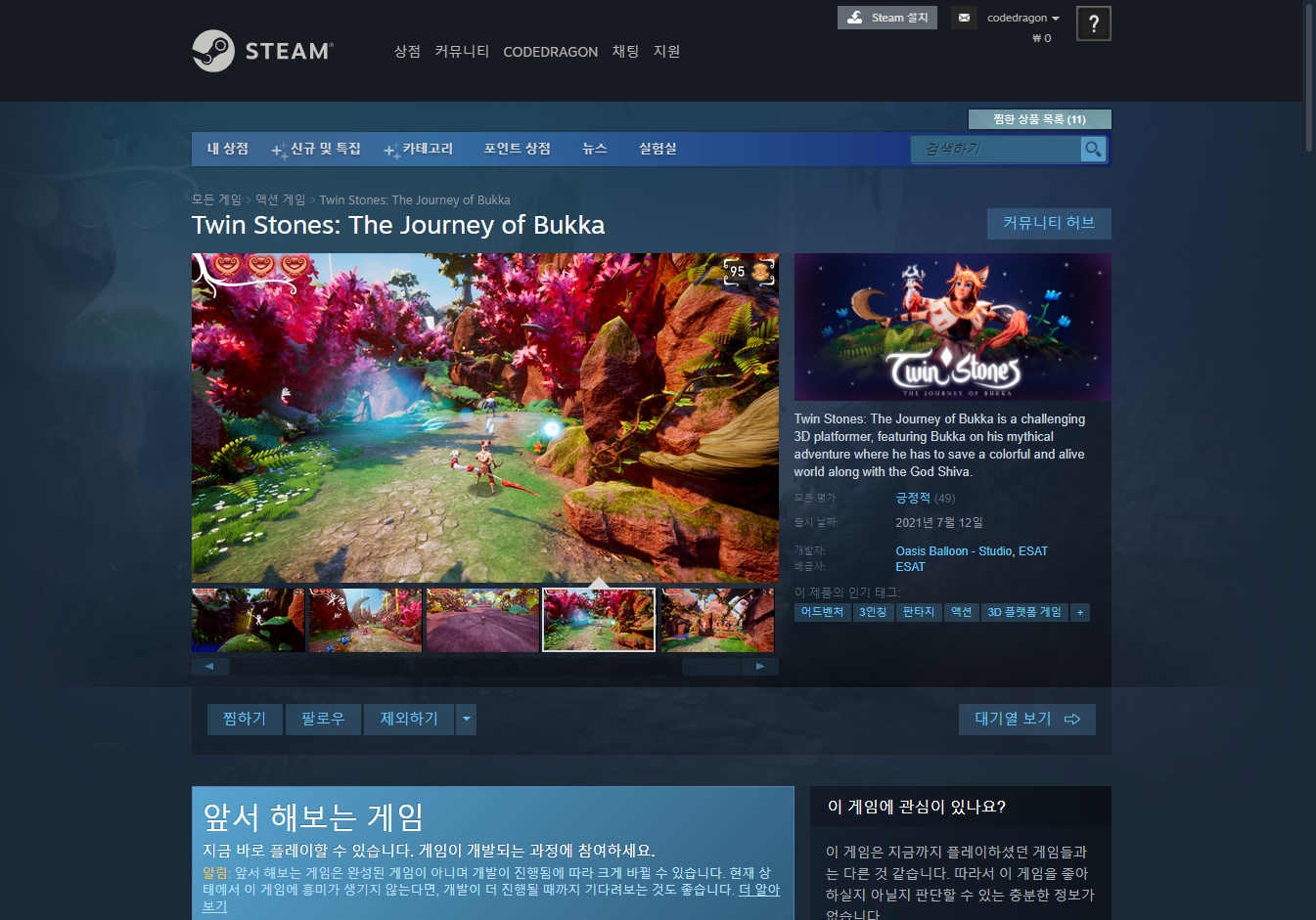 - "Twin Stones: The Journey of Bukka" 게임 페이지 - Steam 스팀
