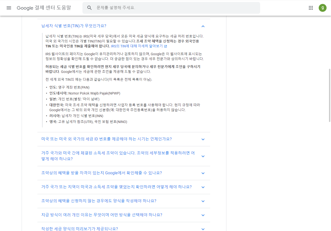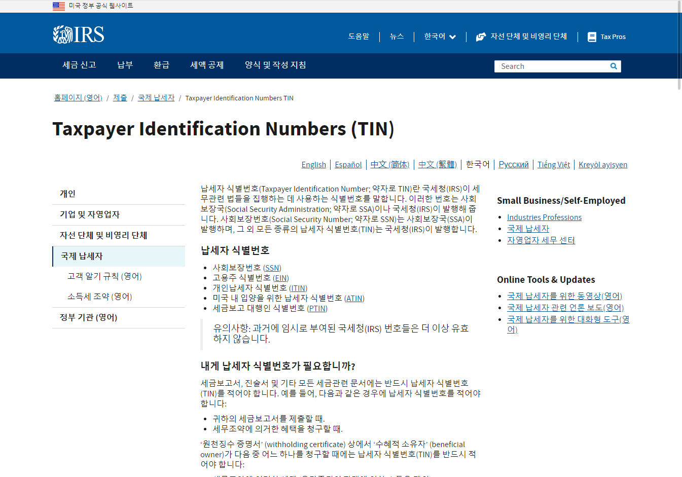- 납세자 식별 번호(TIN)가 무엇인가요?