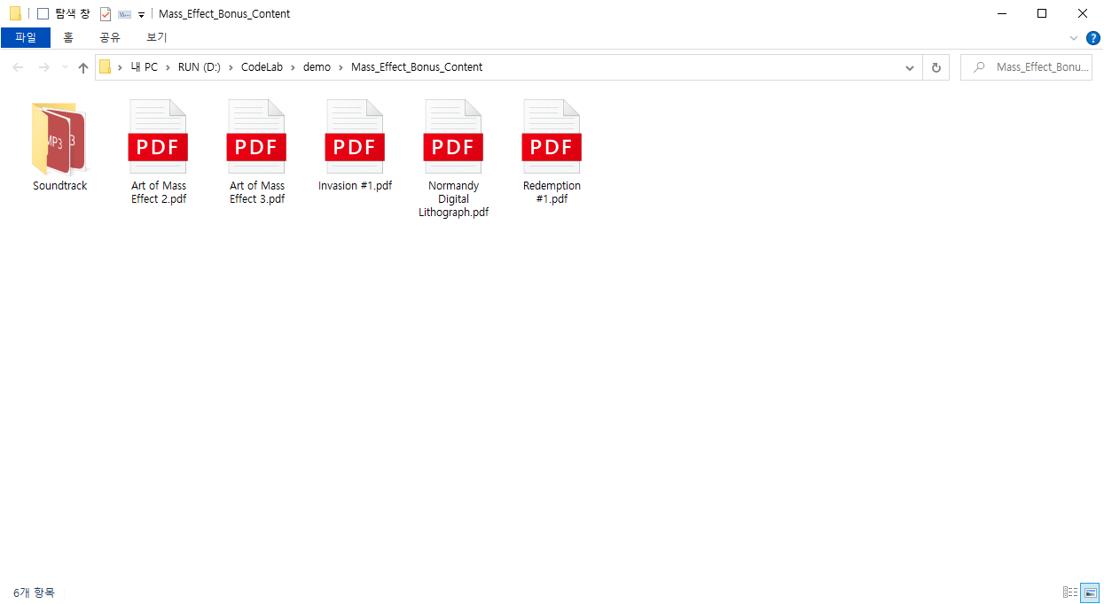 매스 이펙트 게임 관련 만화책 2권, 아트북 2권, 88개의 MP3 사운드트랙, 노르망디 리토그래피가 포함되어 있습니다.