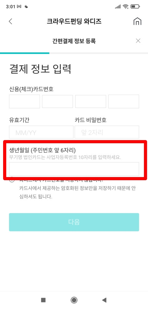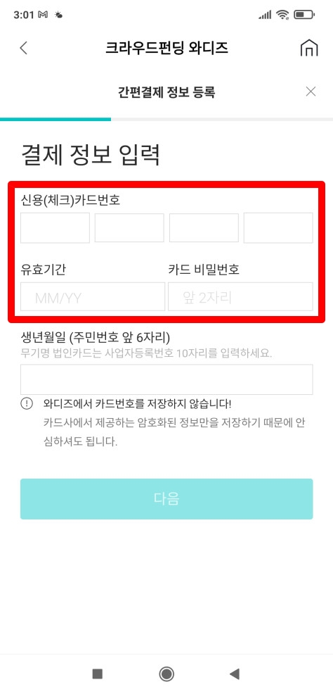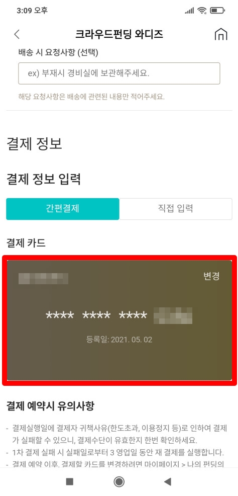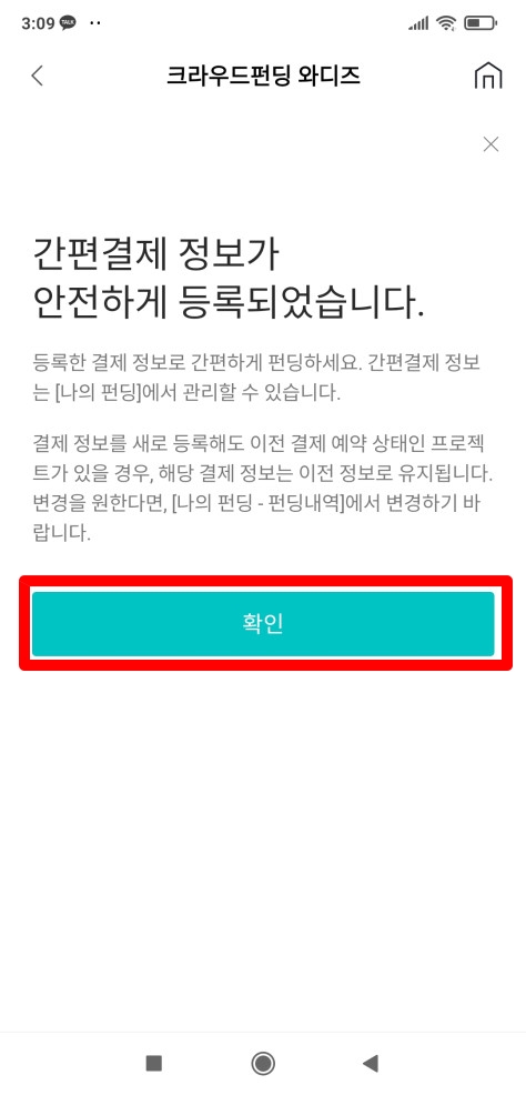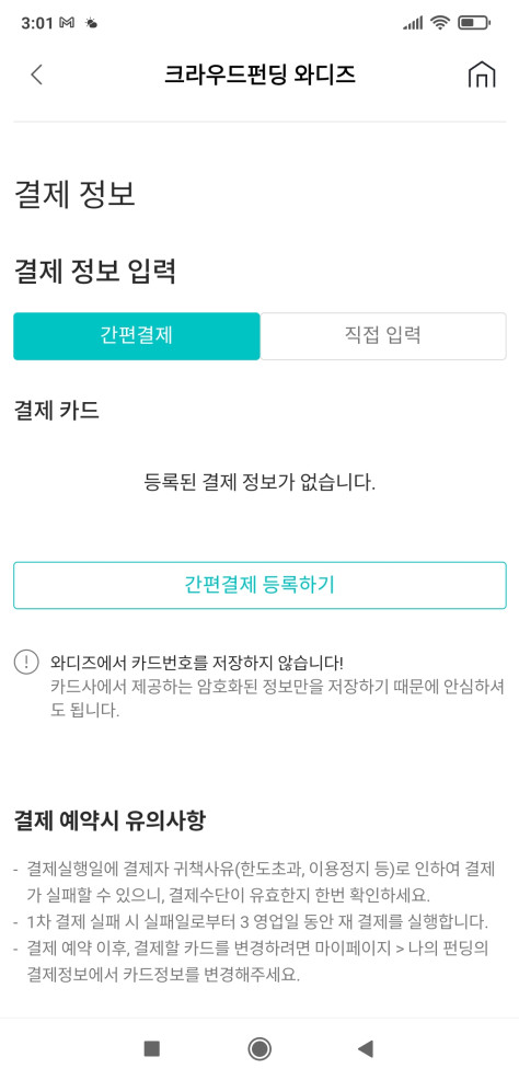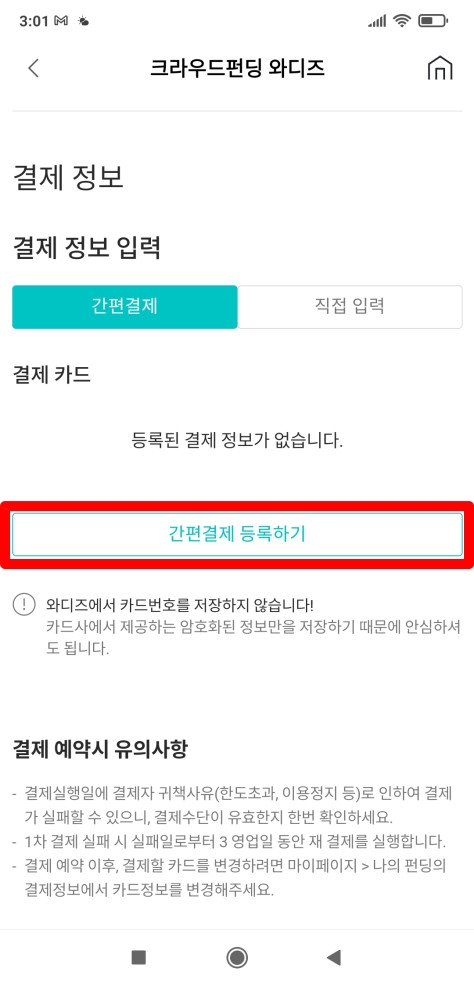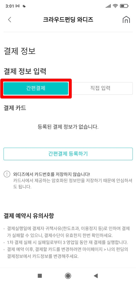 Wadiz 와디즈 간편결제 등록