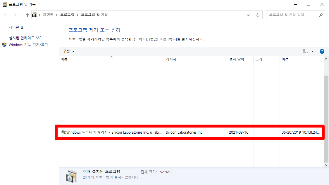 [Windows 드라이버 패키지 - Silicon Laboratories Inc. (silabs...] 항목을 더블클릭합니다.
