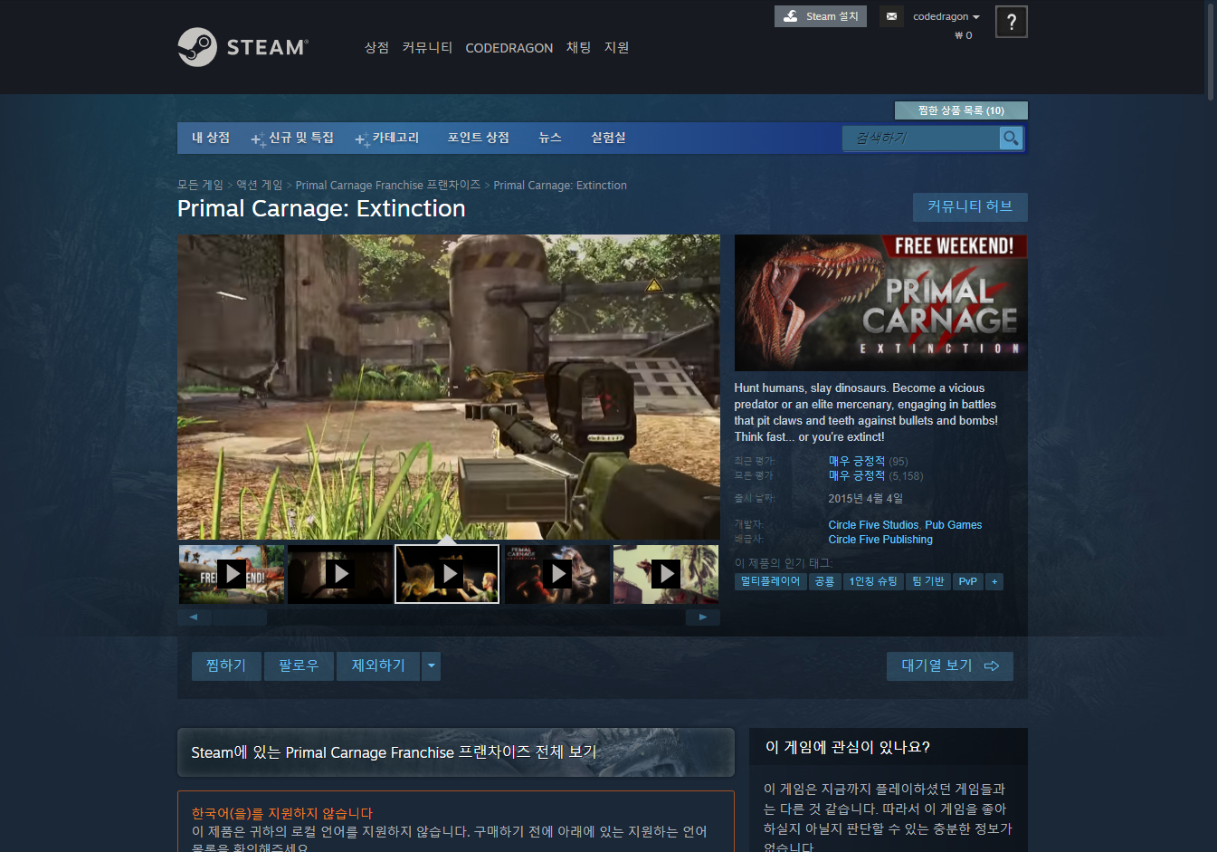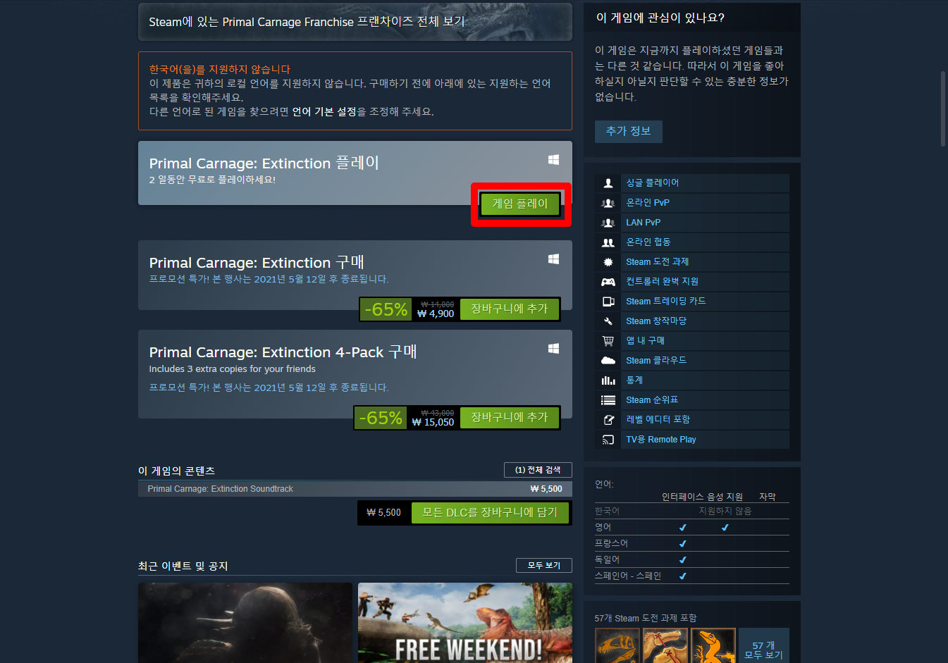 Primal Carnage: Extinction 프라이멀 카니지 익스팅션 - Steam 스팀 금주 무료 플레이 Play for Free weekend on Steam 스팀