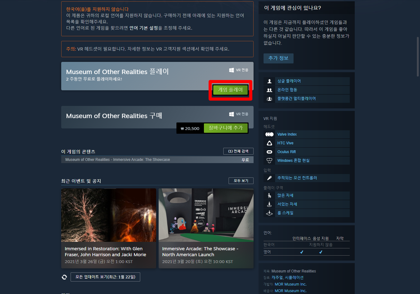 게임페이지를 조금 내려서 [게임 플레이] 버튼을 클릭하면 됩니다.