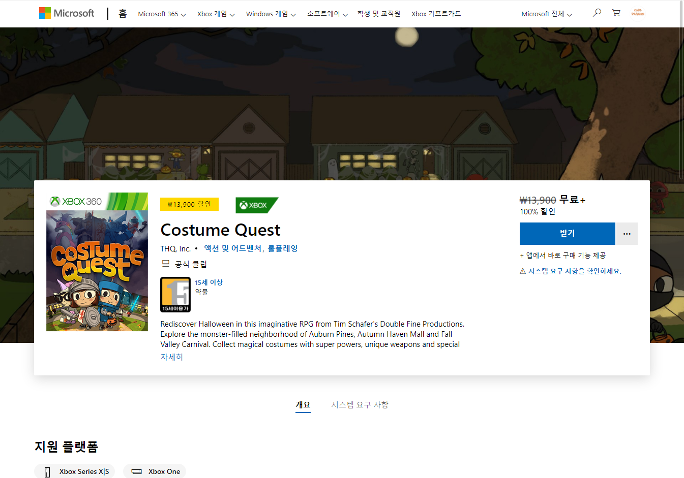 Costume Quest 코스튬 퀘스트 - XBOX 엑스박스 무료게임 받기 FREE GAME