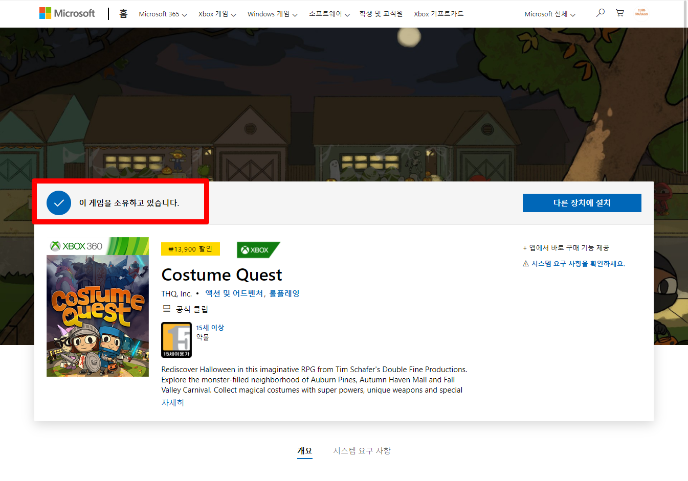 게임페이지에 "이 게임을 소유하고 있습니다"라고 표시되어 가지고 있는 게임항목임을 알 수 있습니다.