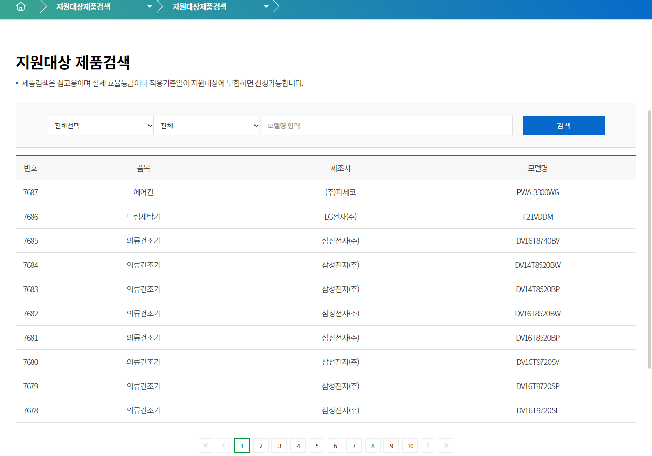 지원대상 제품검색