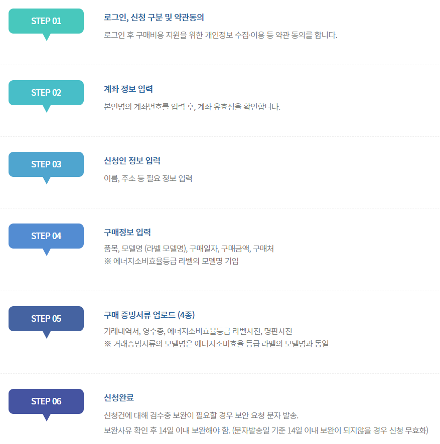 한전 전기요금 복지할인가구를 대상으로 에너지복지 확대를 위해 고효율 가전제품 구입시 구매비용의 10%(가구당 30만원 한도)를 지원해주는 사업입니다.