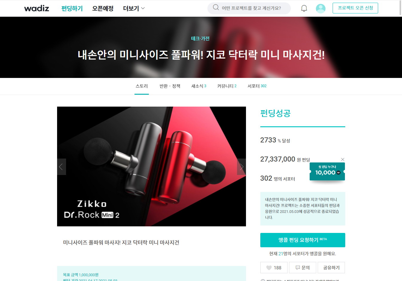 | Wadiz 와디즈 프로젝트 리워드 상품 펀딩하기 (1) | 2021.05.22 |