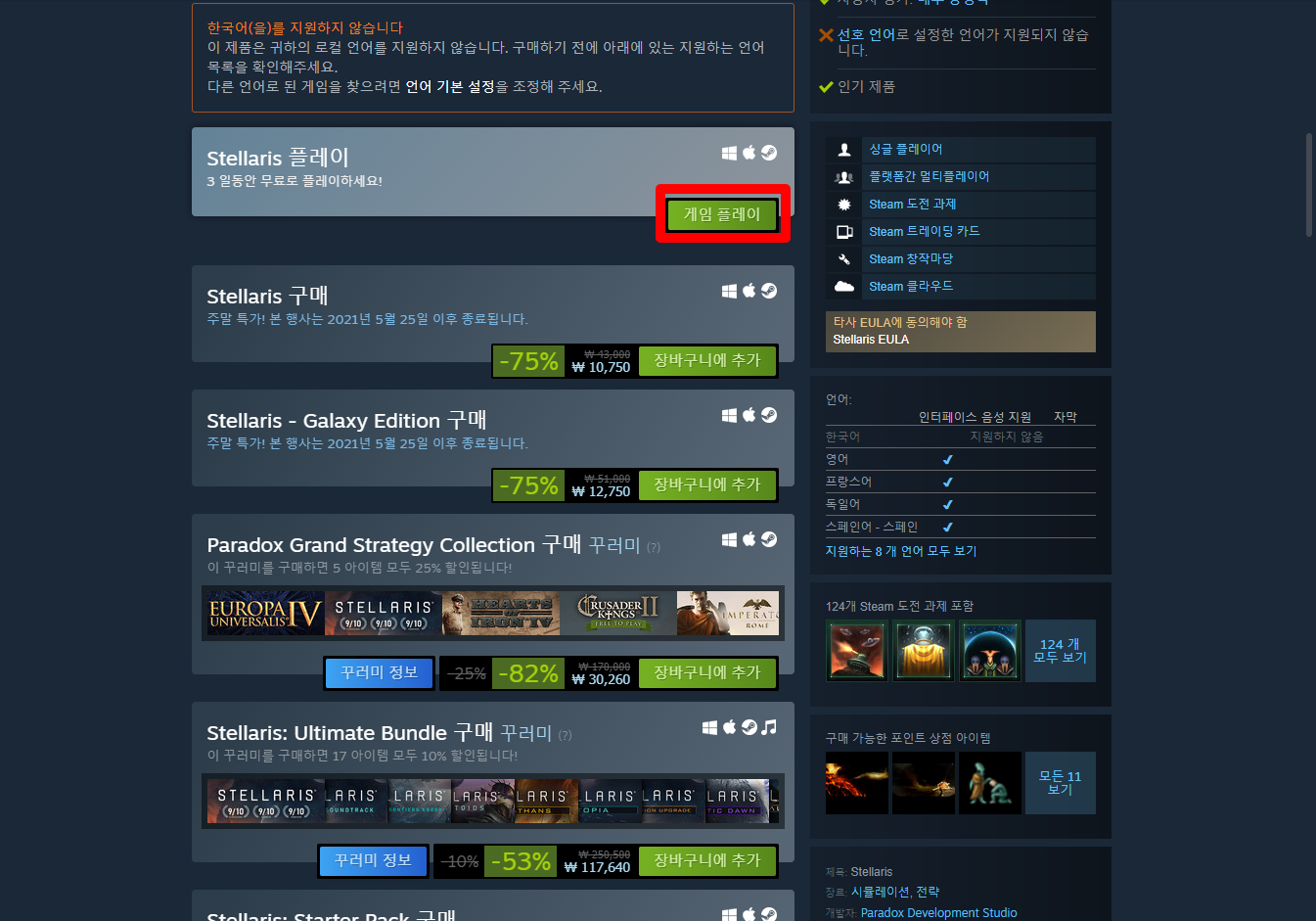 게임페이지를 조금 내려서 [게임 플레이] 버튼을 클릭하면 됩니다.