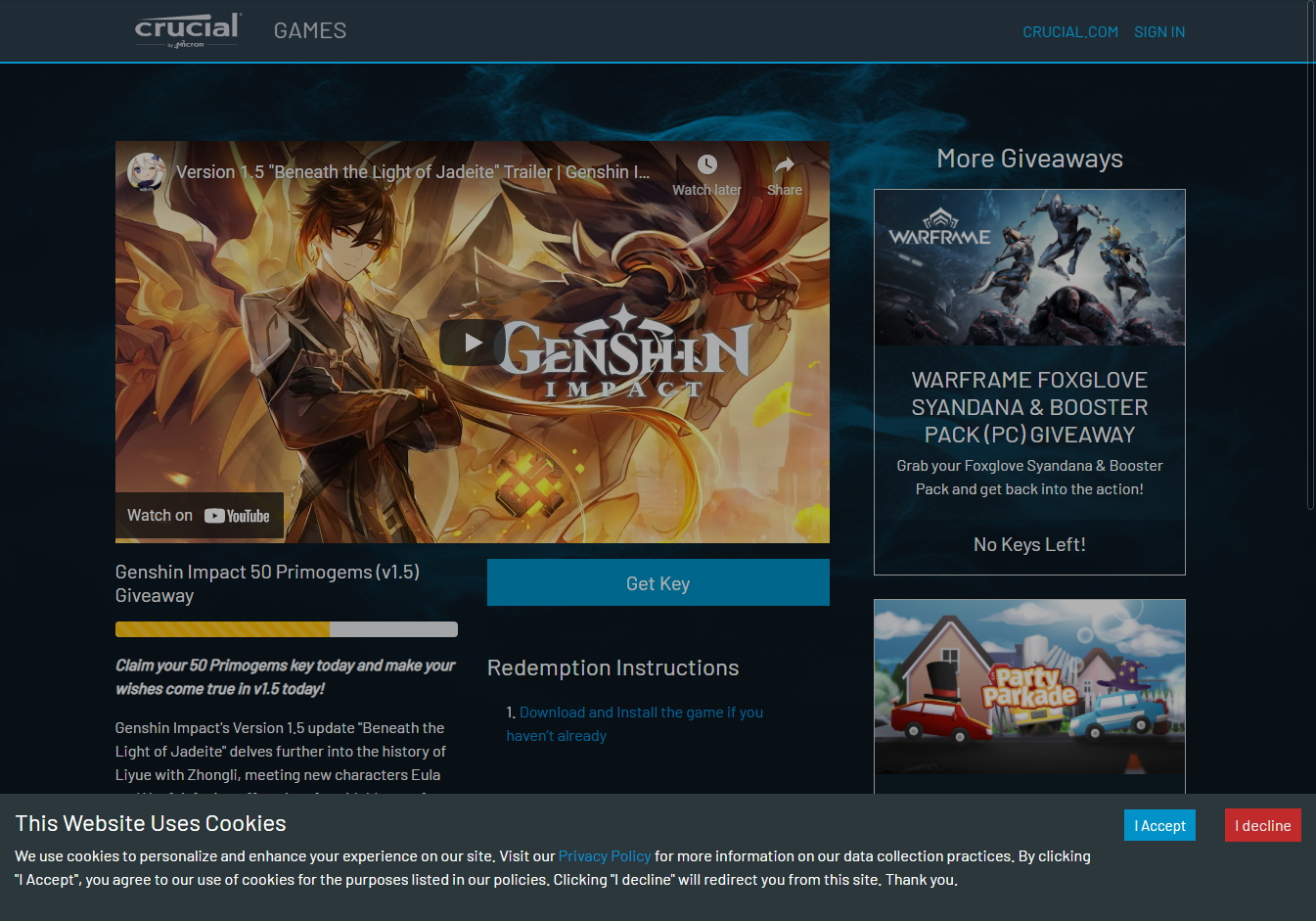 원신 원석 50개 무료 이벤트 Genshin Impact 50 Primogems (v1.5) Giveaway