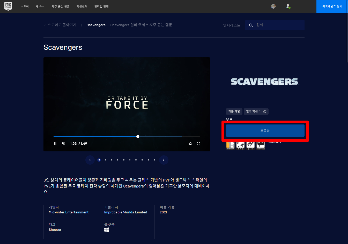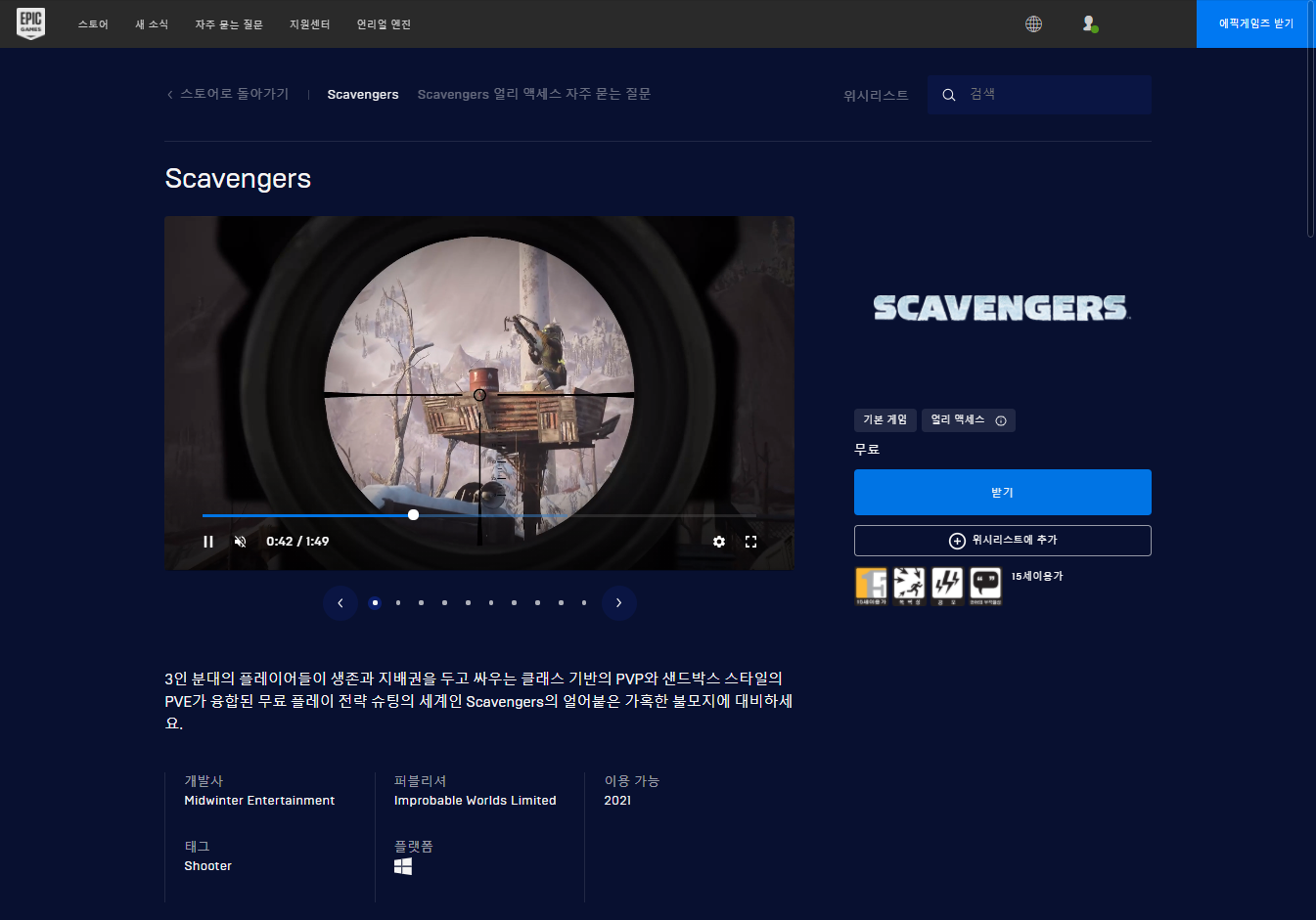 - Scavengers 게임 페이지 - Epic 에픽