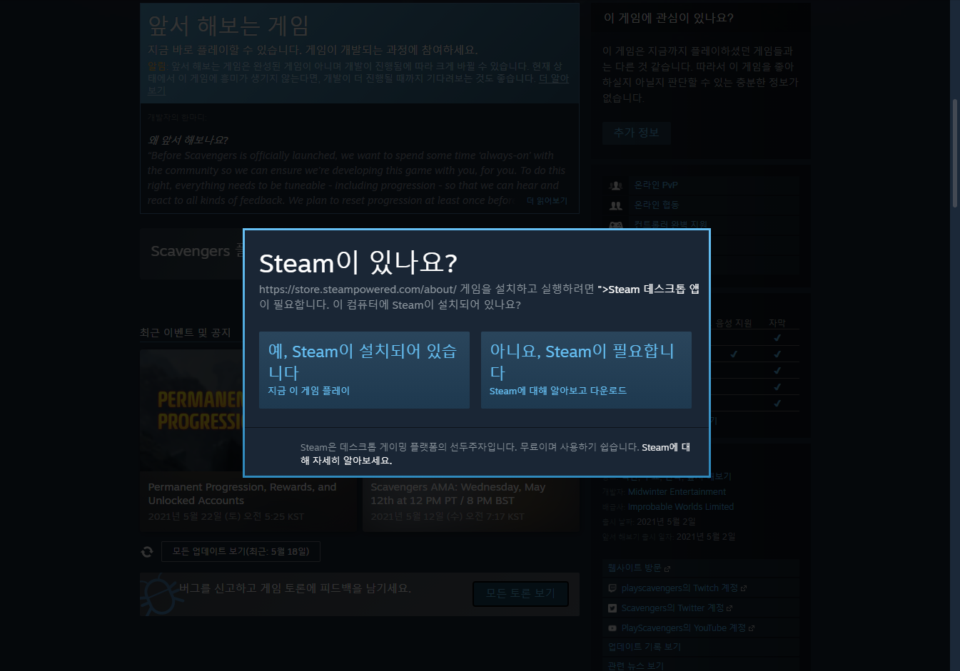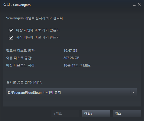 [예, Steam이 설치되어 있습니다.]