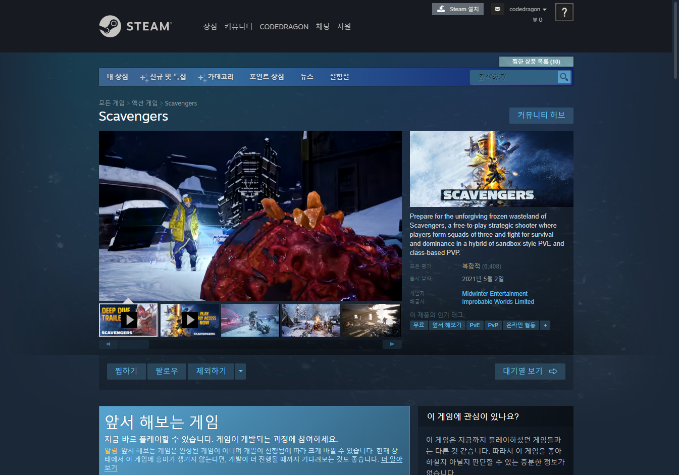 | Scavengers 스캐빈저 - Epic 에픽 Early Access Game 얼리 액세스 게임 앞서 해보는 게임 (0) | 2021.05.26 |