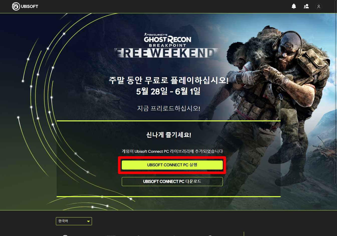 [UBISOFT CONNECT PC 실행] 버튼을 클릭해서 게임 설치 완료 후 플레이하면 됩니다.