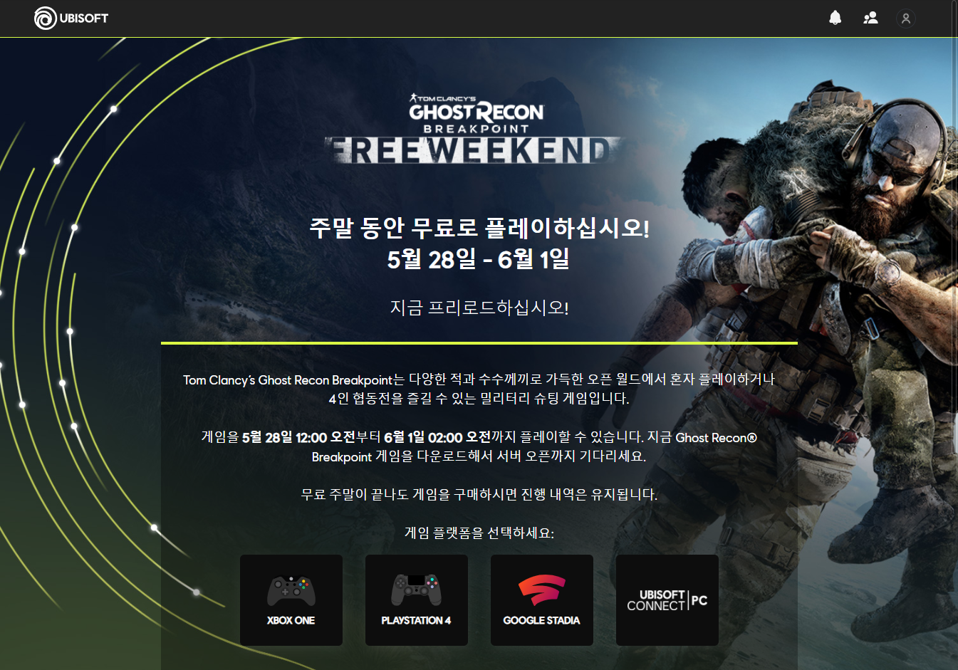 Ubisoft 금주 무료 플레이 - Tom Clancy’s Ghost Recon Breakpoint 톰 클랜시의 고스트 리콘: 브레이크 포인트 Play for Free this weekend 유비소프트