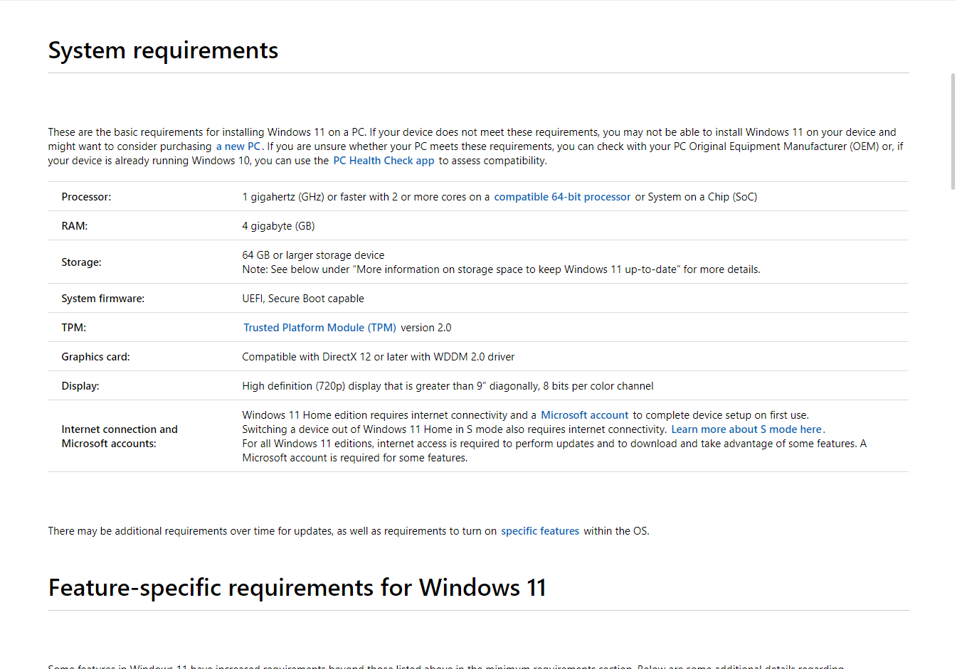 Minimum Hardware Requirements for Windows 11
