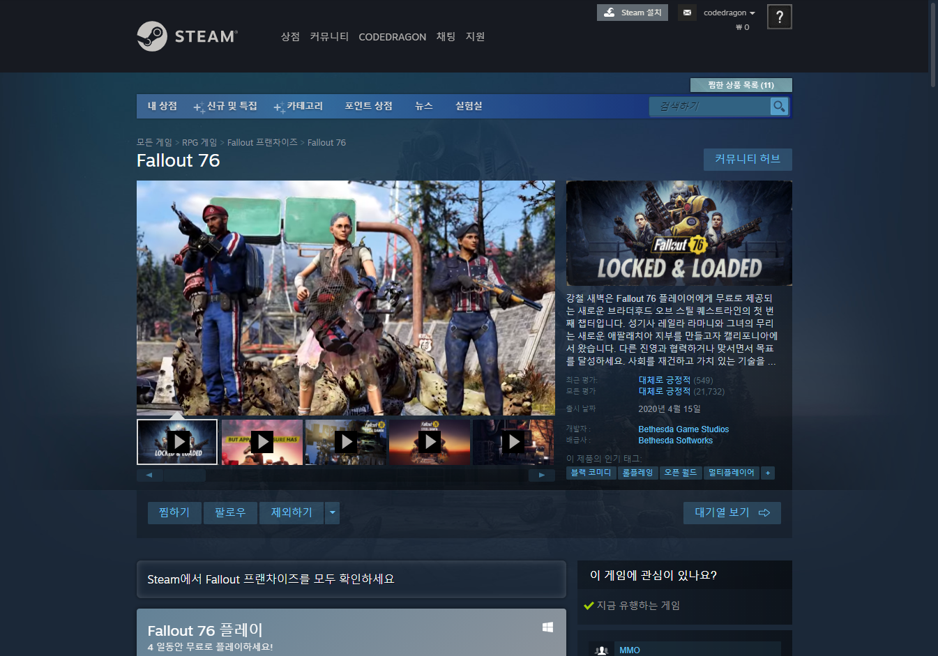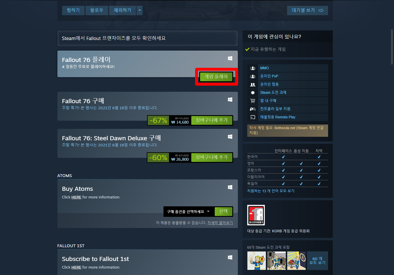 Fallout 76 폴아웃 76 - Steam 스팀 금주 무료 플레이 Play for Free weekend on Steam 스팀