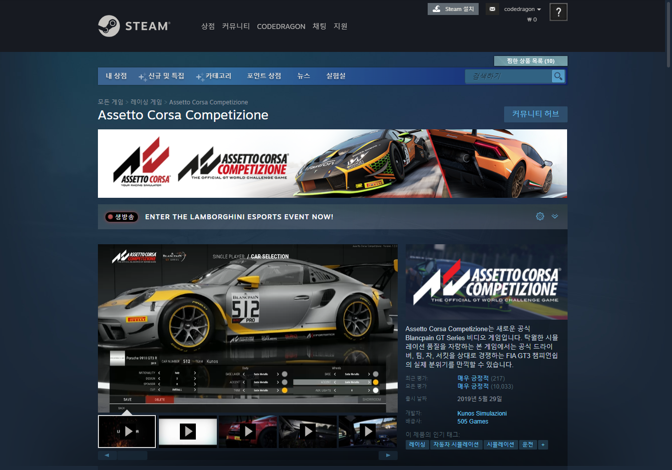 금주 게임은 "레이싱" 게임인 "Assetto Corsa Competizione" 게임입니다.