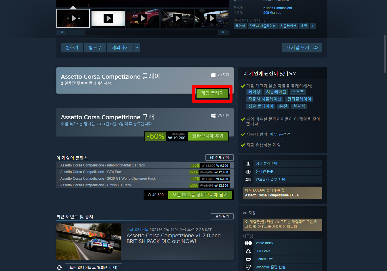 Assetto Corsa Competizione 아세토 코르사 콤페티치오네 - Steam 스팀 금주 무료 플레이 Play for Free weekend on Steam 스팀