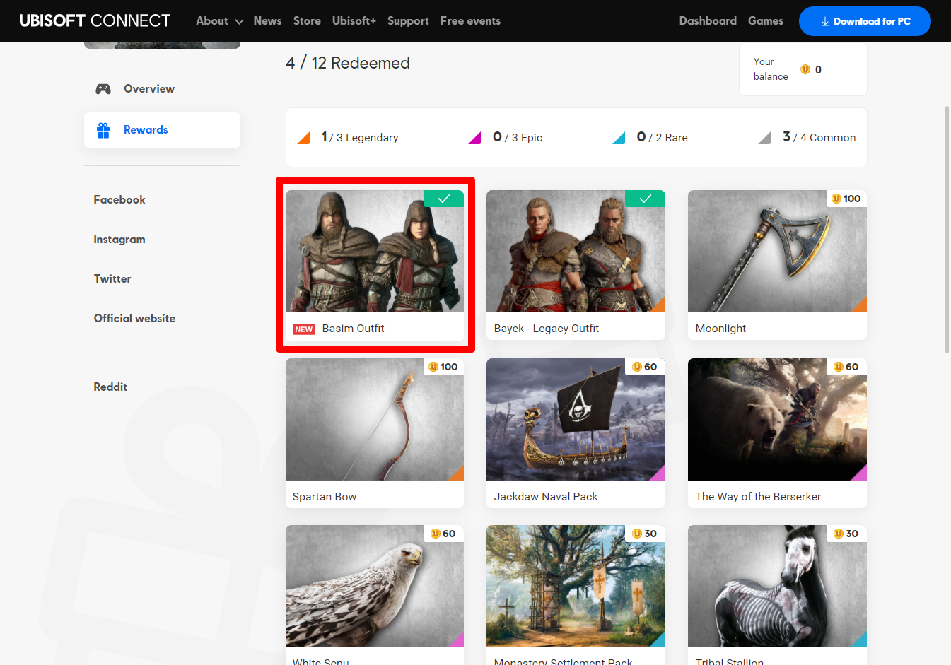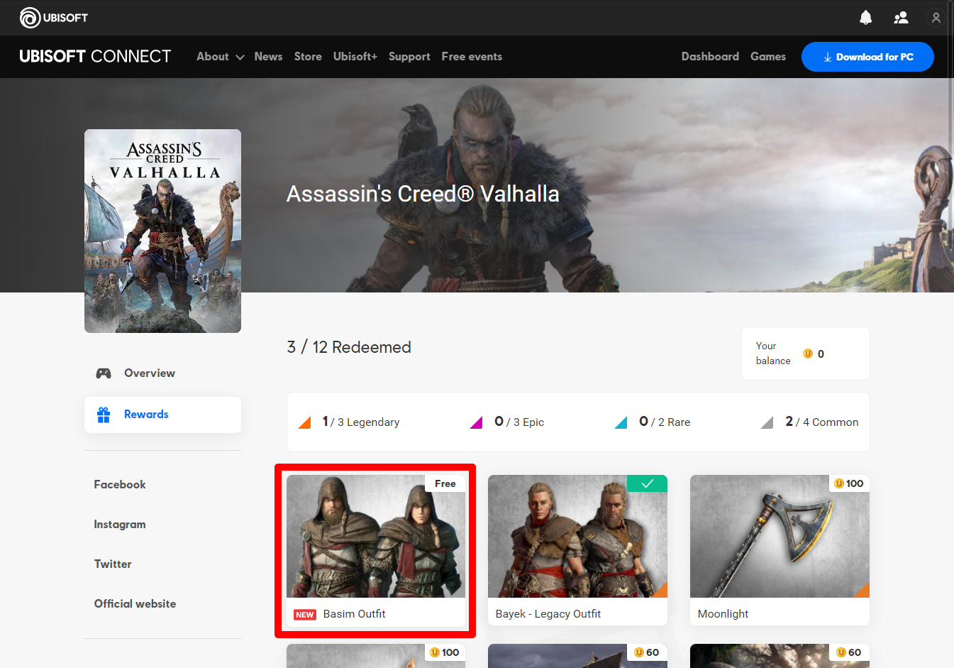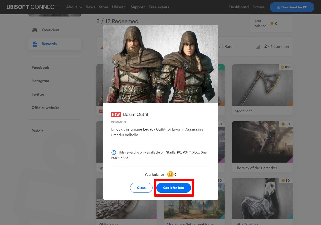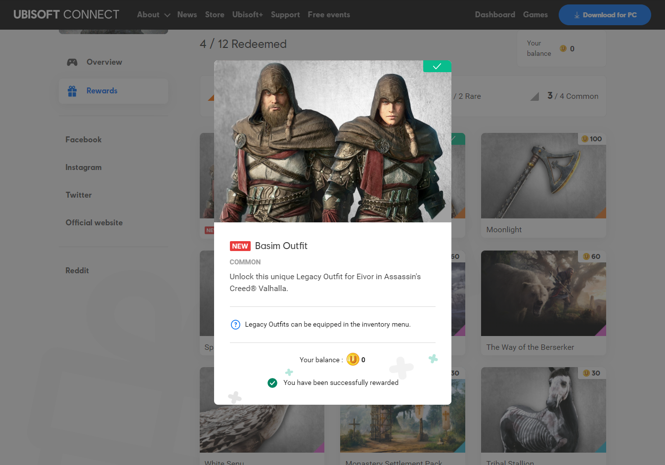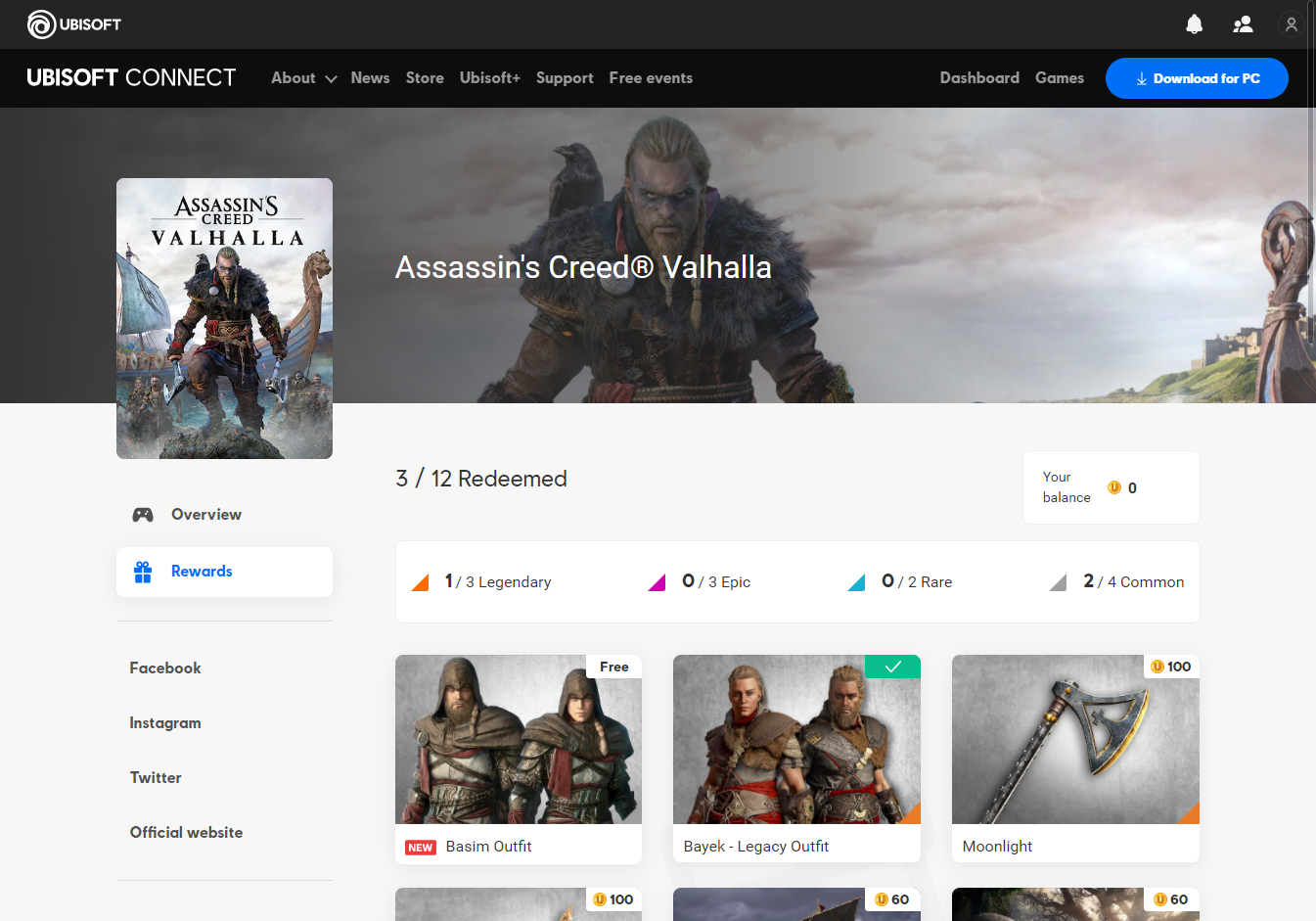 Assassin's Creed Valhalla Rewards page