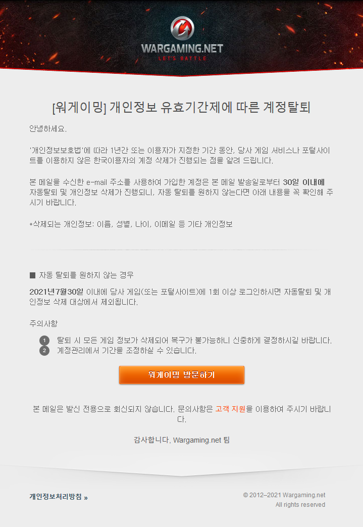 [워게이밍] 개인정보 유효기간제에 따른 계정탈퇴