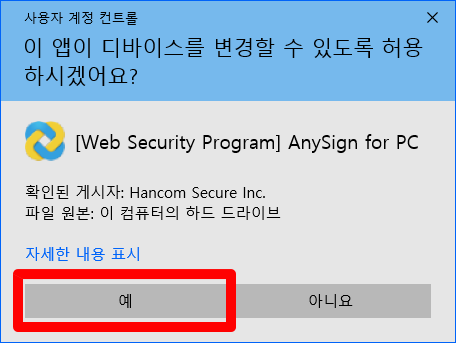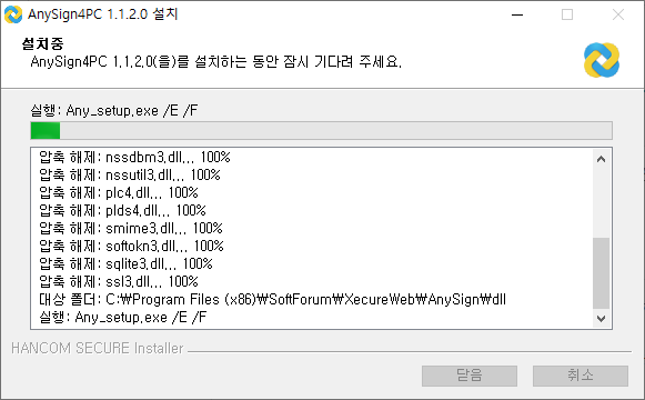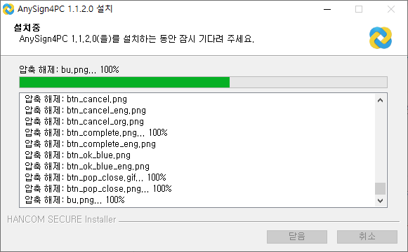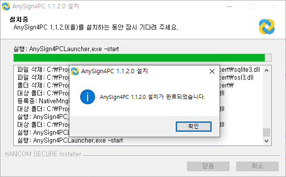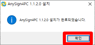 [확인] 클릭해서 창을 닫아주면 설치가 끝났습니다.